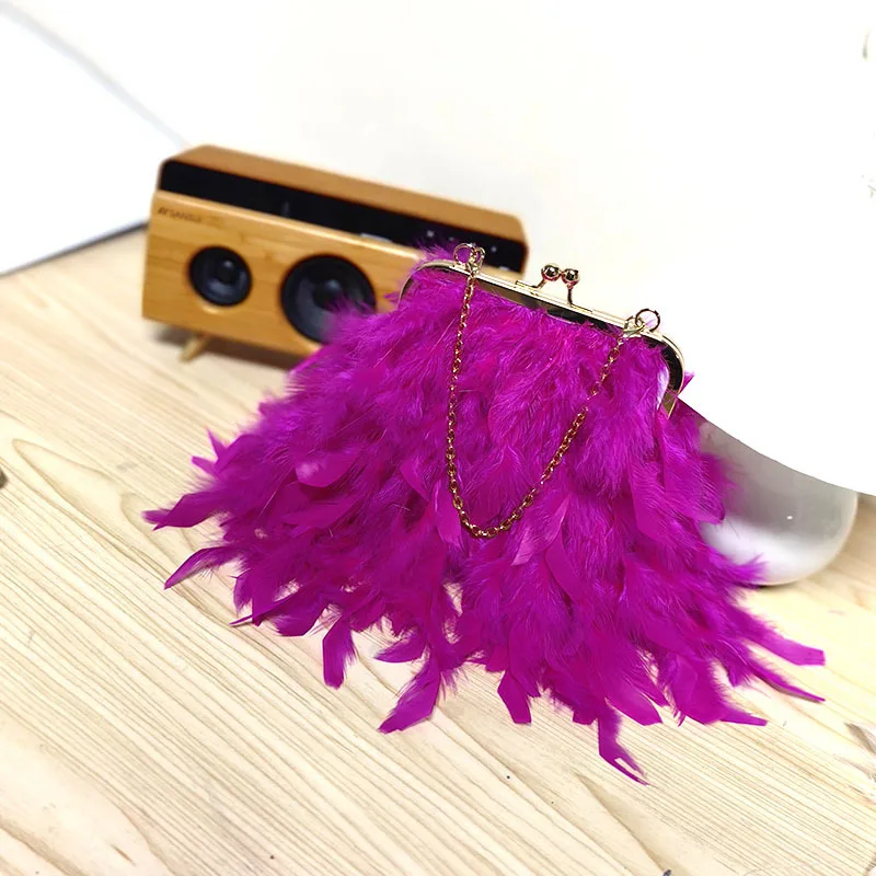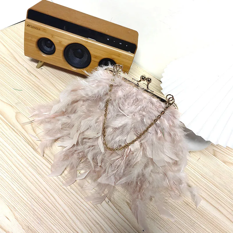2025 New Feather Purses and Handbags Women Party Evening Clutch Bag Shoulder Bag Pearl Chain Designer Wedding Bag
