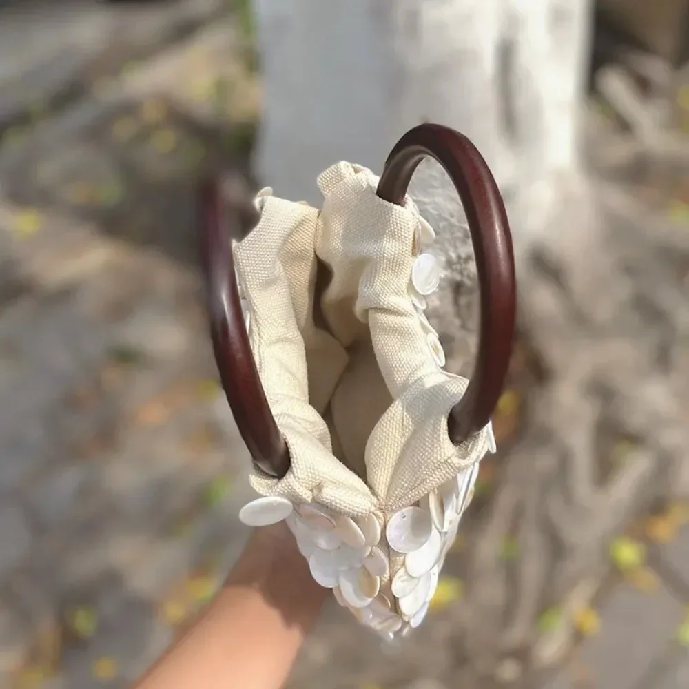 Versatile Design : Featuring a wooden handle and chain shoulder strap, this crossbody bag offers versatility, making it suitable for various occasions and styles.