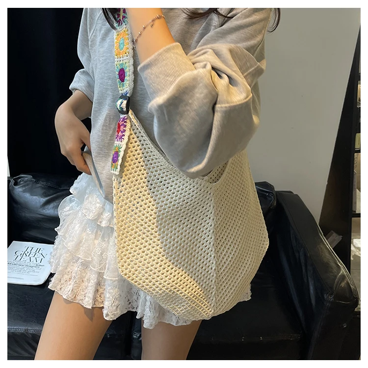 2025 Summer New – Bohemian Fresh Hollow Woven Tote Bag – Large Capacity Single-shoulder for Leisure & Vacation