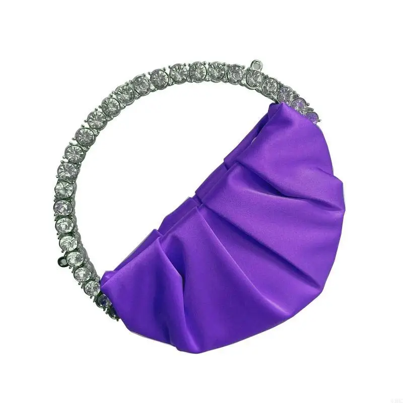 63HC Stylish Women Handbag Evening Party Bridal Clutch Bag with for Rhinestone Circular Handle Girls Prom Wedding Wallet Purs