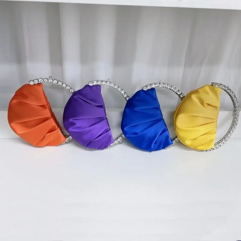 for Rhinestone circular handle desing, satins material,zipper closure. This clutch handbag captures all the surrounding eyes.