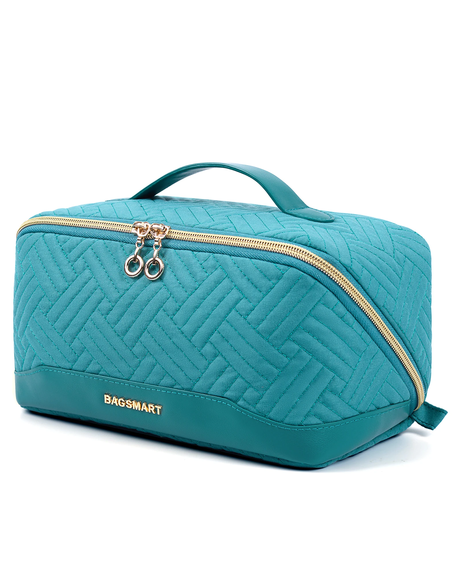 The travel makeup bag with 180-degree wide-open design brings a easier way for you to reach and find what you need quickly. It provides large storage accessing your makeup at a glance, especially convenient for people who don't like organizing cosmetics or skin care products. Higher design on both sides is designed to prevent leaking from the edge.