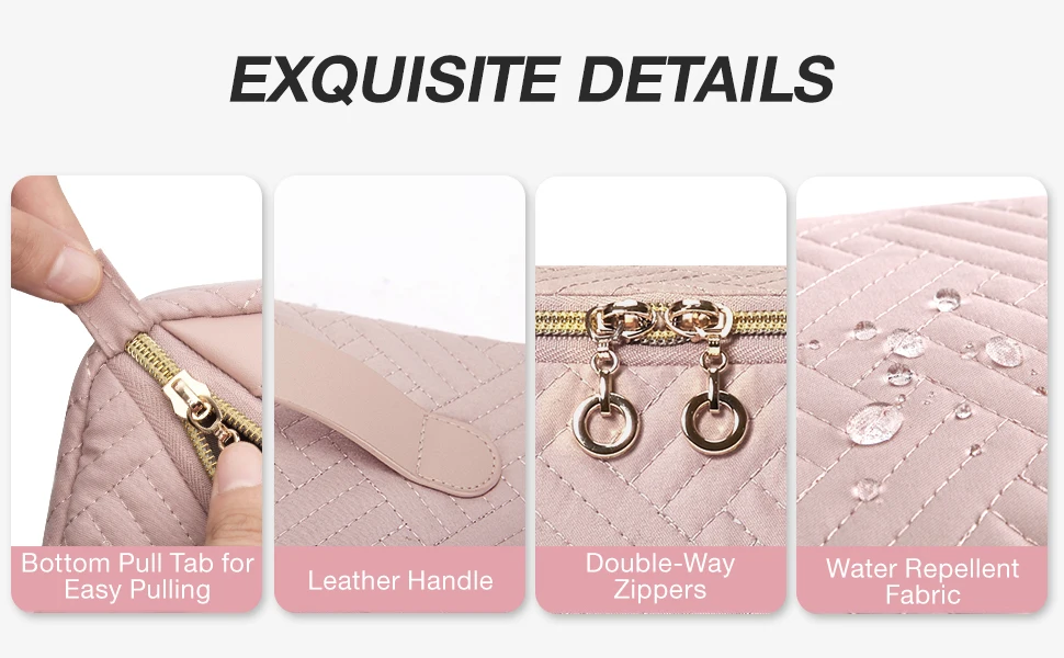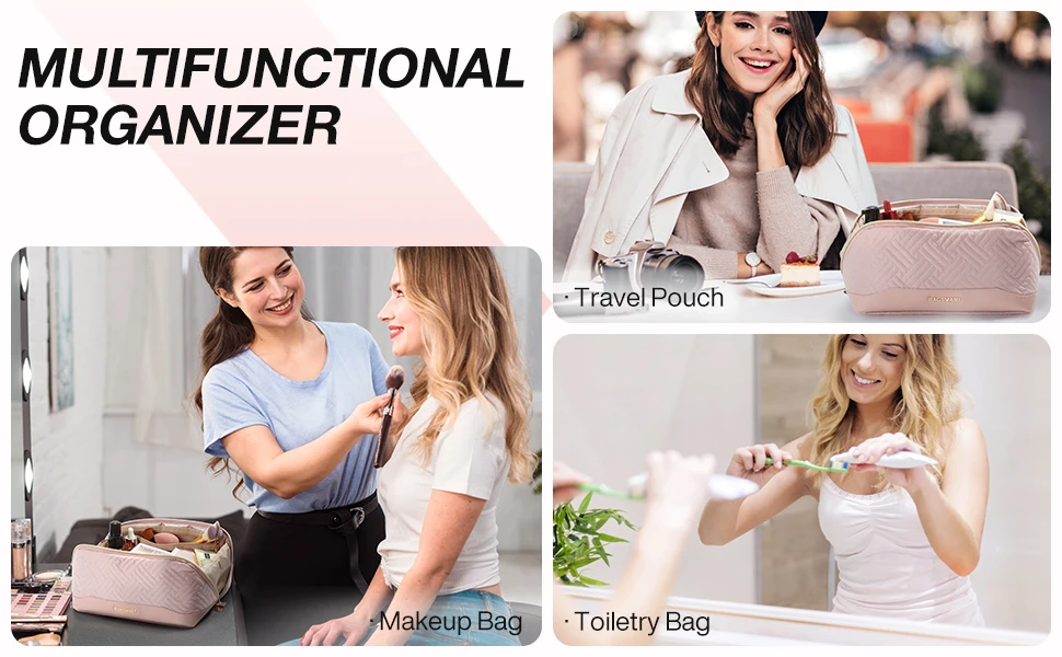 The make up bag provides wide opening, large capacity, easy cleaning and multi-function, designed to make your travel easier.