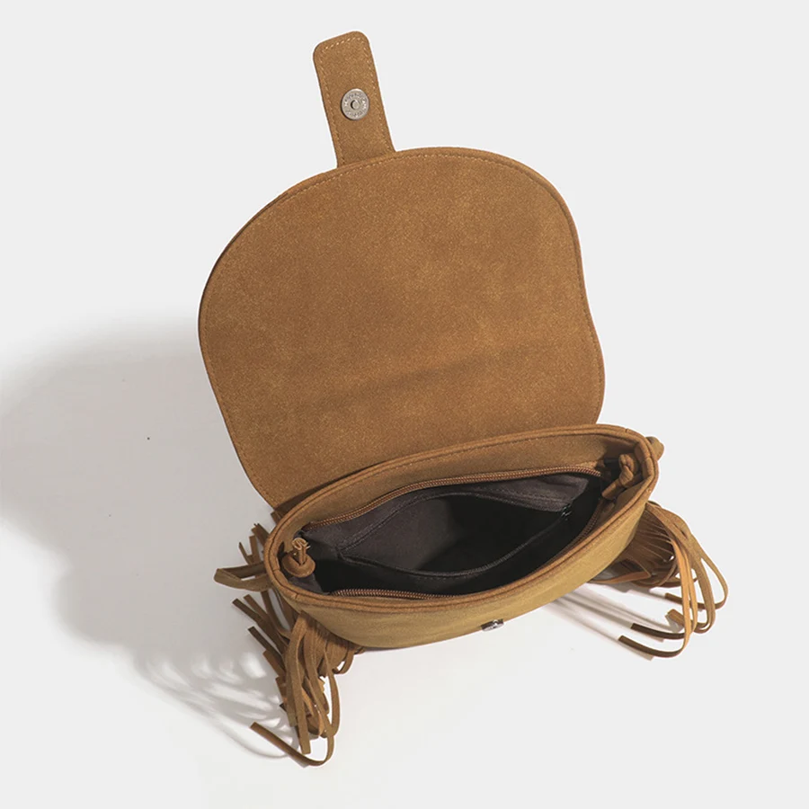 Boho Style Bohemian Fringed Crossbody Bag Versatile Faux Suede Design Shoulder Bag Flip Small Square Bags For Women Daily Travel