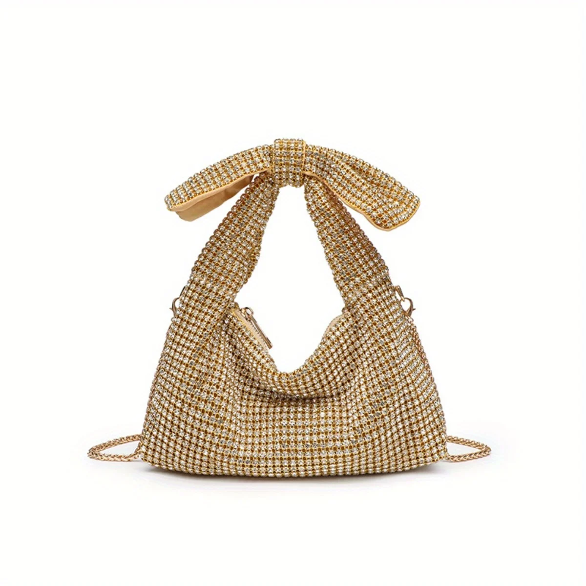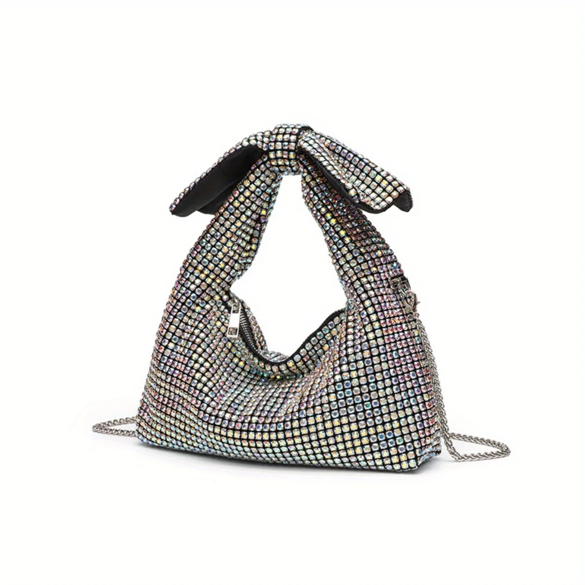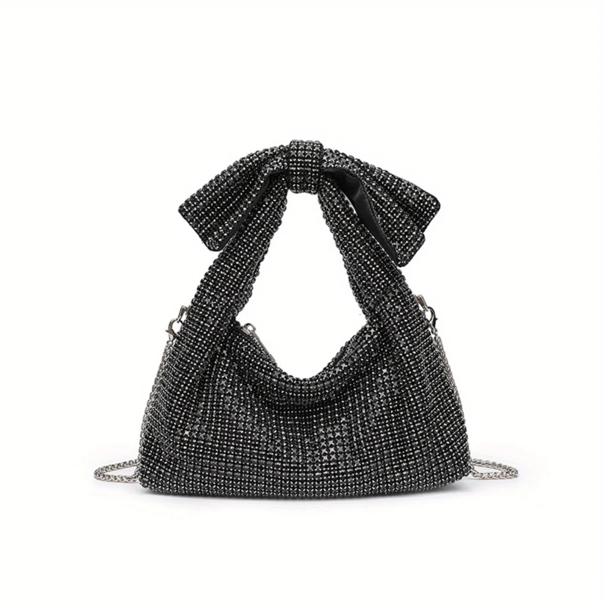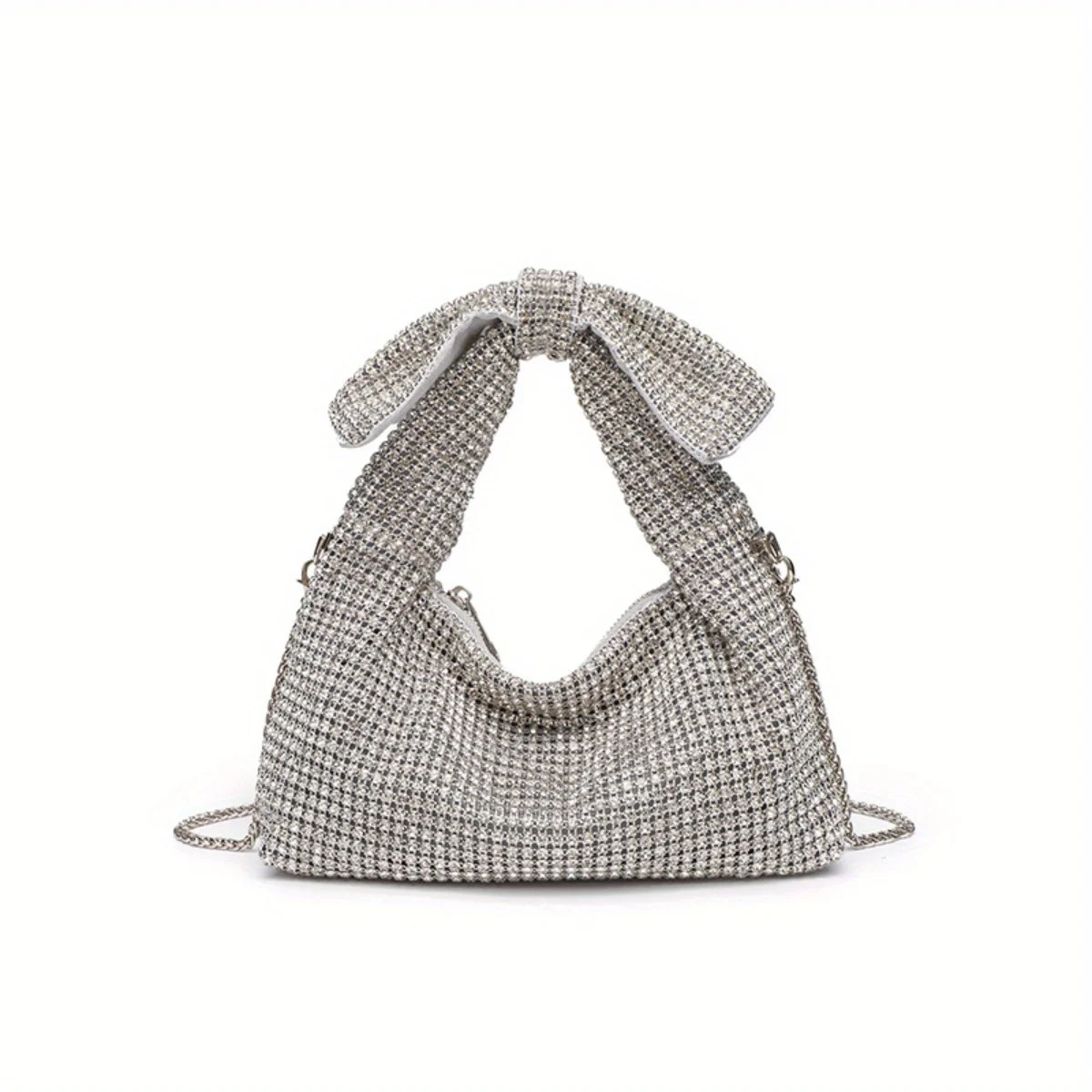 Bow Evening Bag for Women Rhinestone Shoulder Purse Glamorous Crystal Crossbody Bag Sparkling Party Clutch for Special Occasions