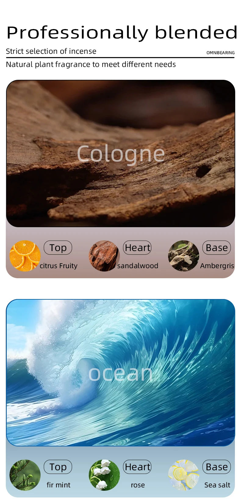 3.Effectively Freshen Car Air: The smart car air freshener diffuser uses ultrasonic atomization technology to spray out a fine fragrance mist. With the air-conditioning wind, the fragrant air circulates throughout the cabin, easily eliminating various odors. The 1 bottles of perfume provided are made from natural plant extracts. They have a refreshing fragrance that is not irritating and has no side effects on children and the elderly.