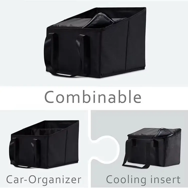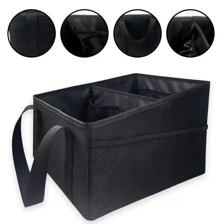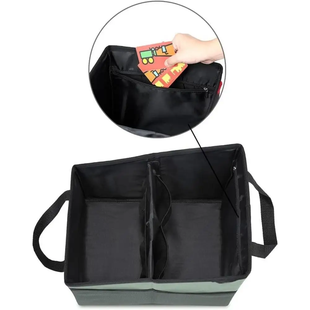 Foldable with Dividers - Compact design for easy assembly. The main compartment has ample space for essential items like wiper fluid, oil, jumper cables, tools, and more. Additionally, with four cup holders and four side pockets, you can organize everything for a worry-free trip. Folds down when not in use to minimize space.