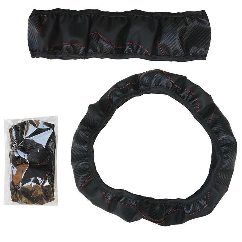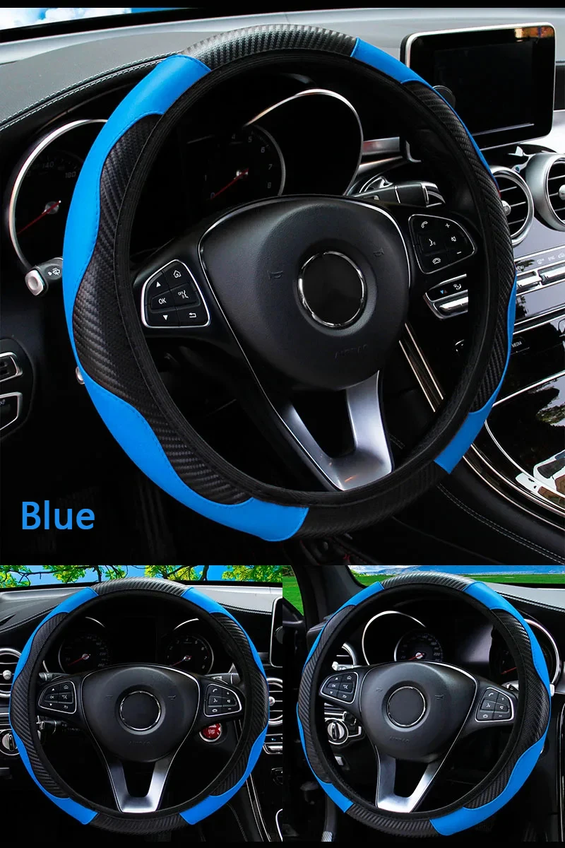 Car Steering Wheel Cover Breathable Anti Slip PU Leather Steering Covers Suitable 37-38.5cm Auto Decoration Carbon Fiber
