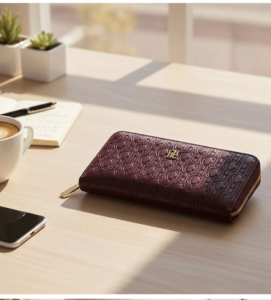 CH Women's Solid Colour Long Wallet Niche Design Fashion Simple Large Capacity Bag Luxury Temperament Vintage Classic Wallet