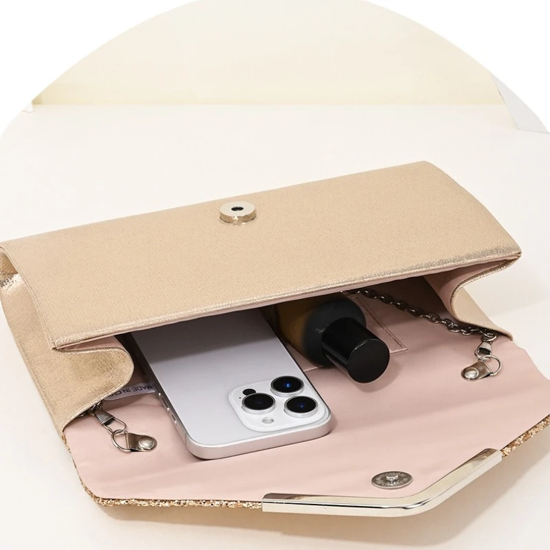 Clutch Bags for Women Metal Chain Glitter Sequined Evening Bags with Envelope Party Wedding Lady Handbags Banquet Messenger Bags