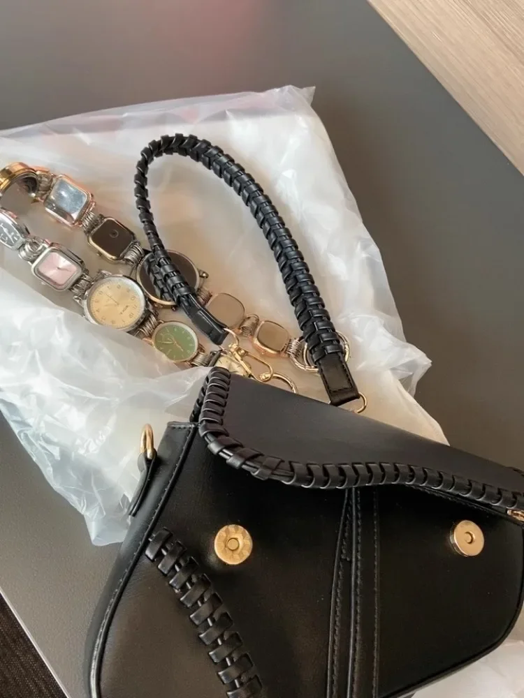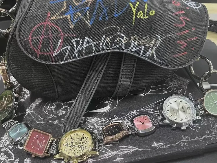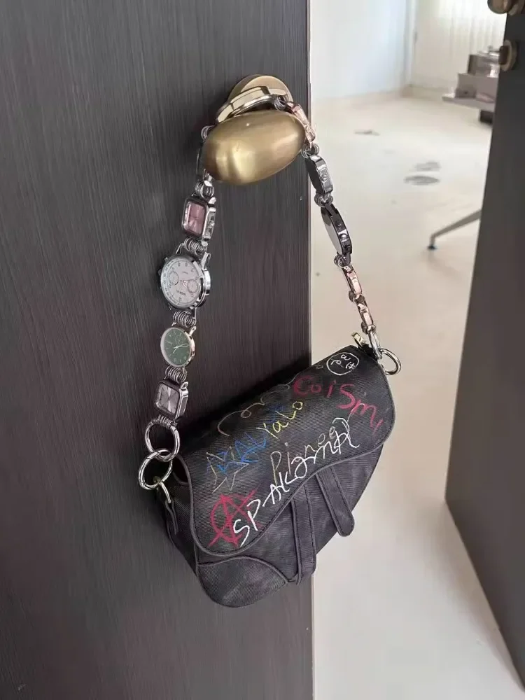Designer Luxury Saddle Bag Women 2025 New In Fashion Chic Metal Watch Strap Shoulder Bag Trend Graffiti Novelty Female Bags