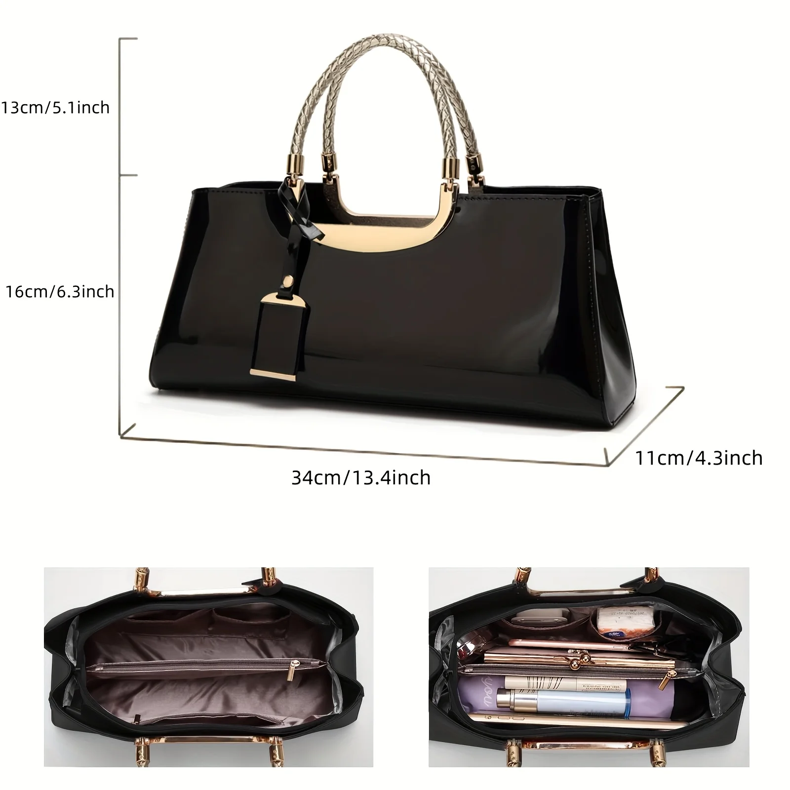 Elegant ladies' evening handbag - shoulder bag, patent leather glossy leather PU leather crossbody bag
