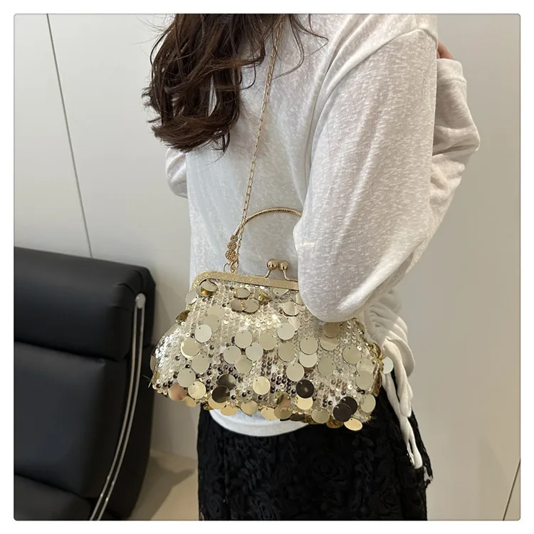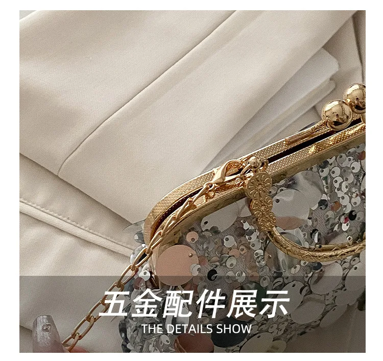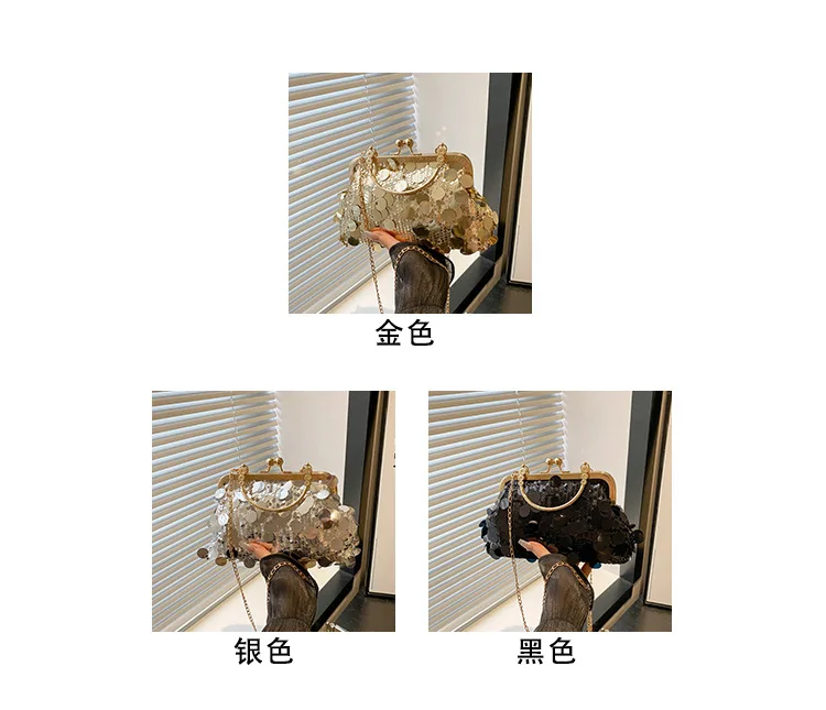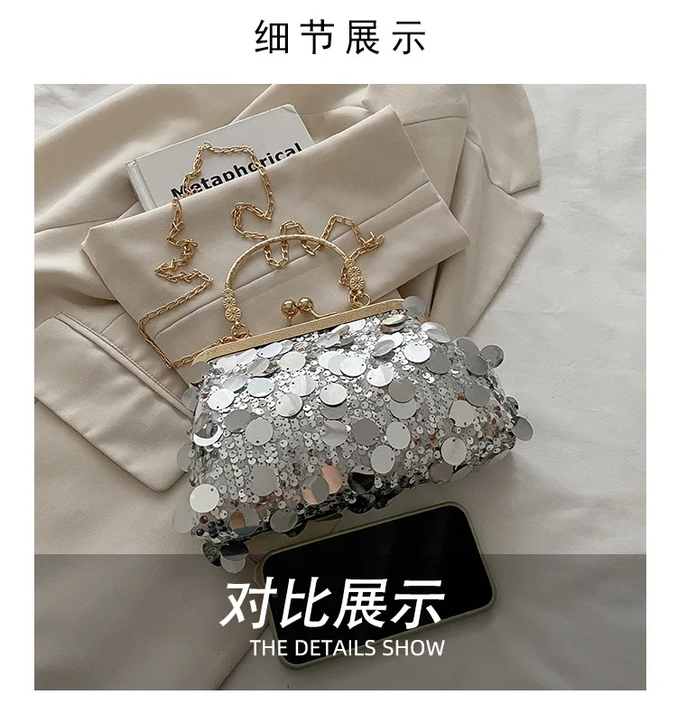 Elegant Sequined Evening Shoulder Bags for Women Solid Color Ladies Clip Chain Crossbody Bag Casual Female Shell Handbags Purse