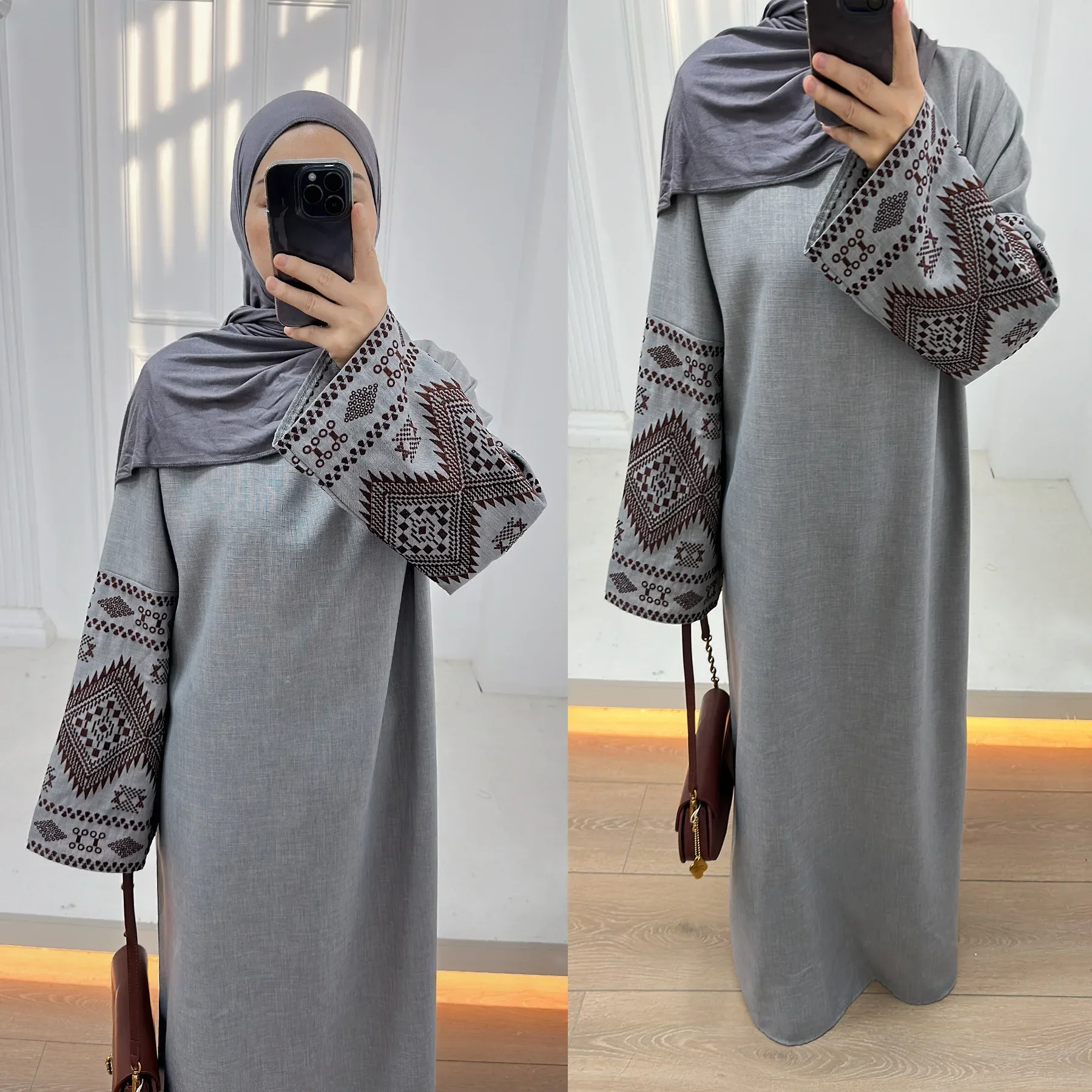 Embroidery Cuff Closed Muslim Abaya Dress for Women Dubai Turkey Islmaic Clothes Eid Ramadan Abayas Adult Black Long Robe Female