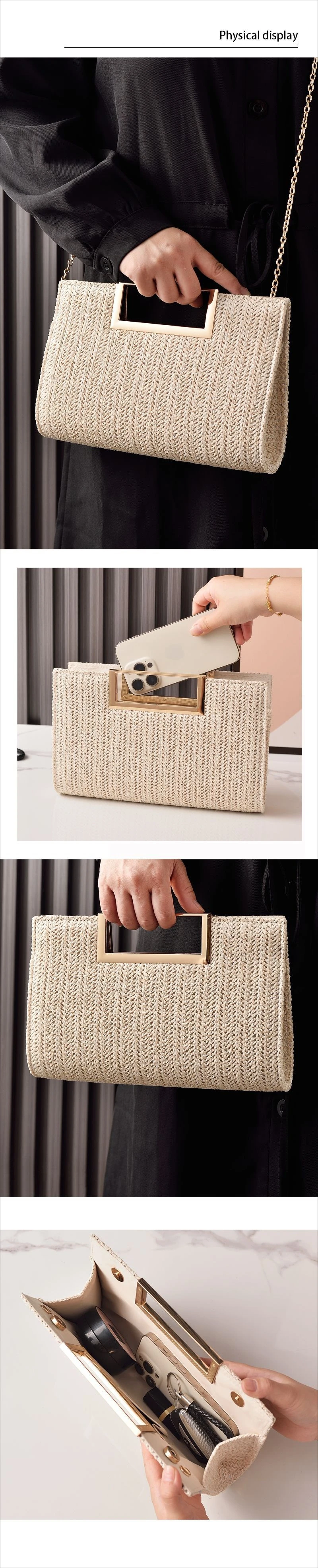 European Style Straw Evening Bag 2025 New Square Buckle Clutch Simple Dinner Bag for Women Shoulder Crossbody Bags