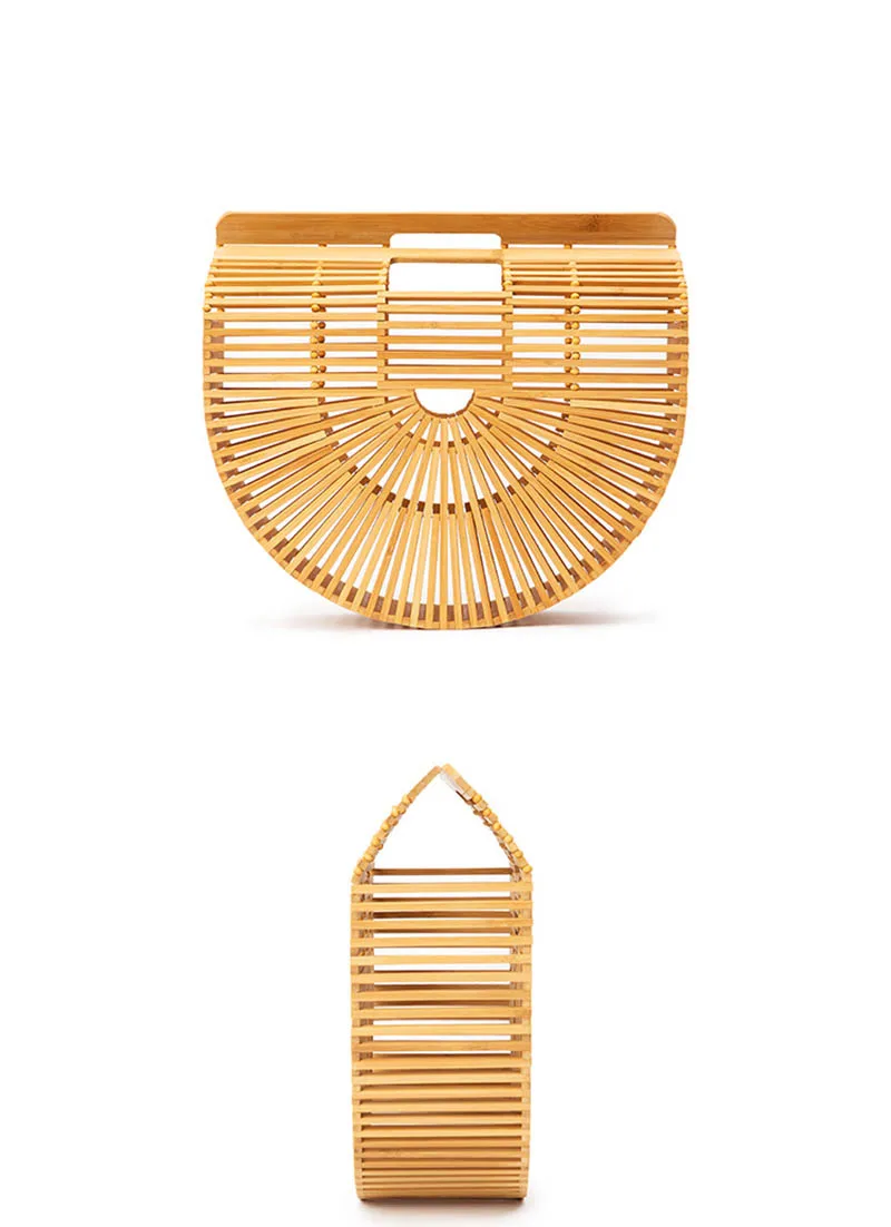 Fashion Straw Bag Bamboo Semi-circular Handbags High quality Hand woven Women Bags Bohemia Summer Ladies Beach Bag Bamboo Bags