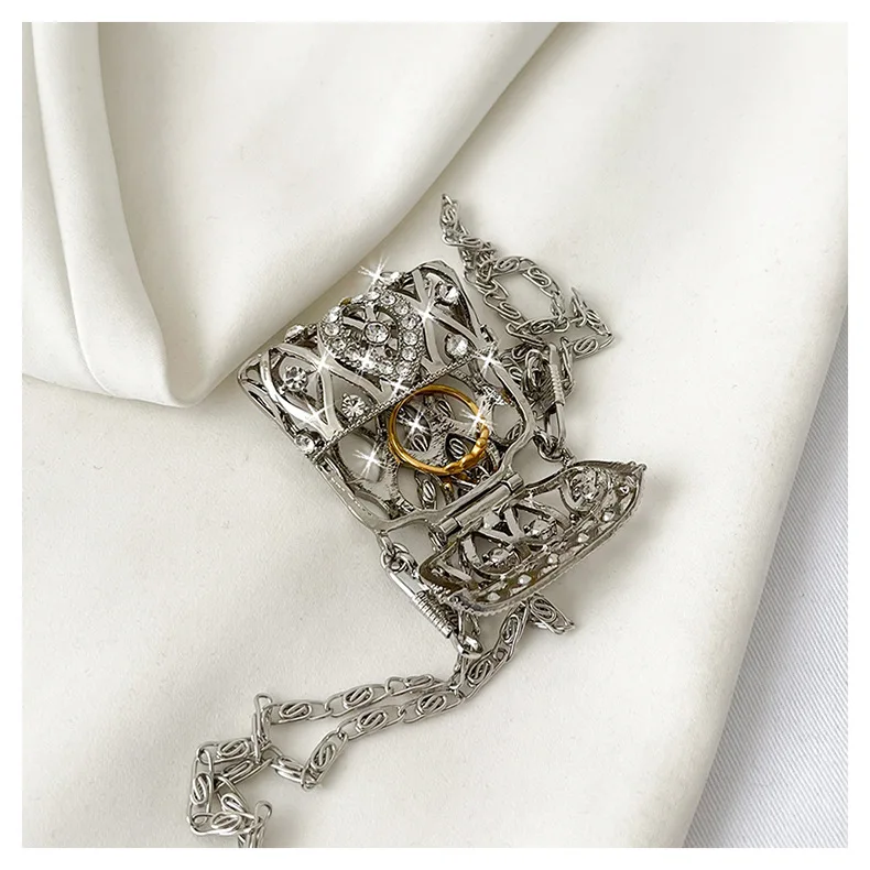 This female ring evening bag features an elegant design with rhinestone round ball handbags, adding a touch of luxury to any outfit.