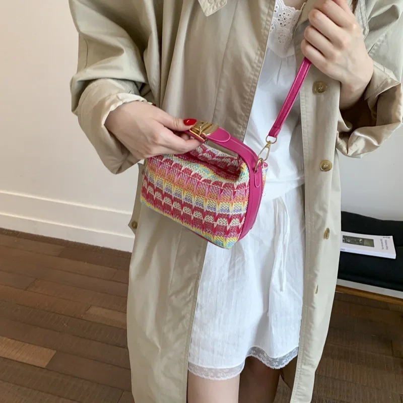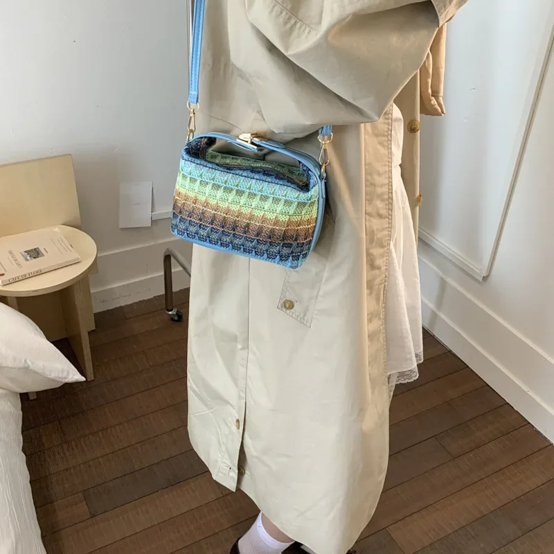 Fresh Style Small Square Bag Summer New Fashion Shoulder Crossbody Handbag Soft Polyester Fiber Internal Structure Hip Hop