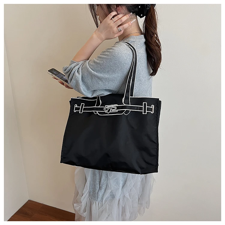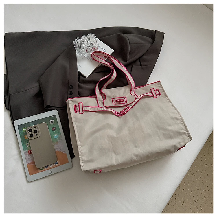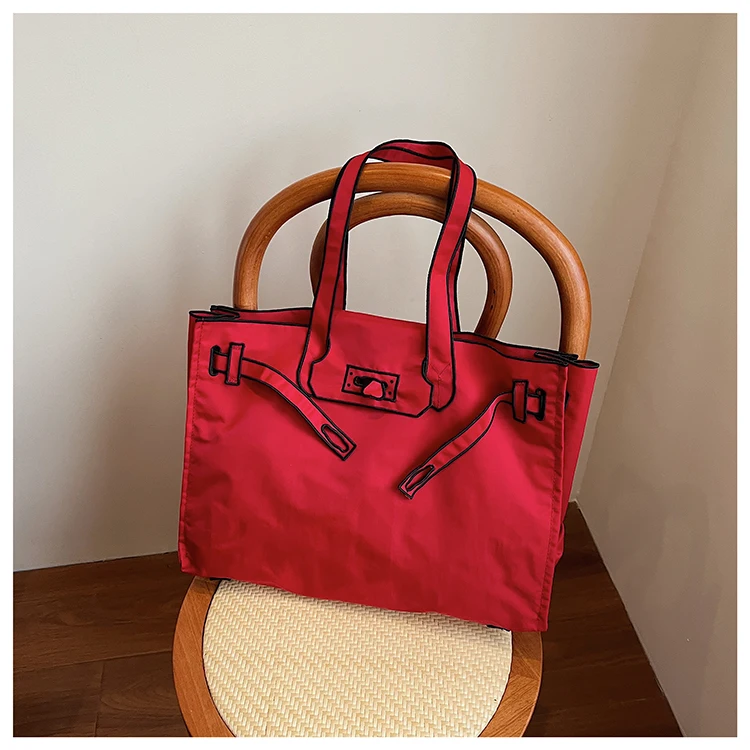 Funny Design Large Capacity Tote Bags 2025 New Casual Lightweight Nylon Shoulder Bag Versatile Canvas Bag Women Shopping Handbag