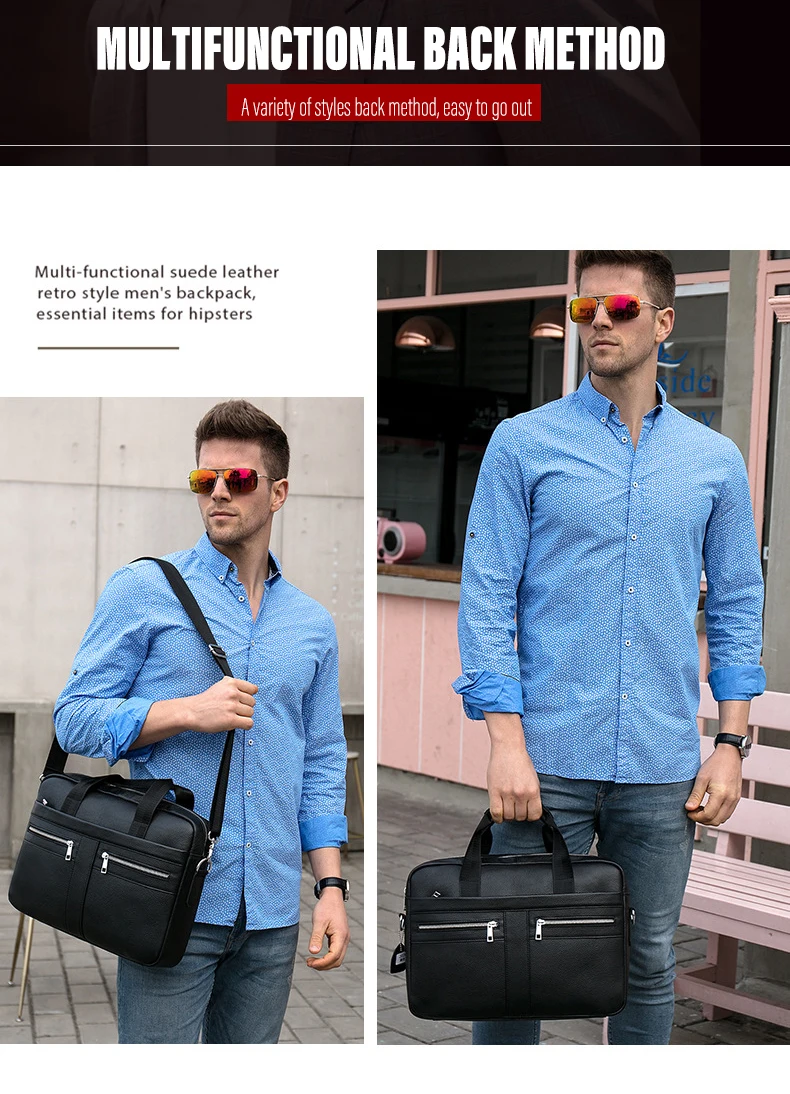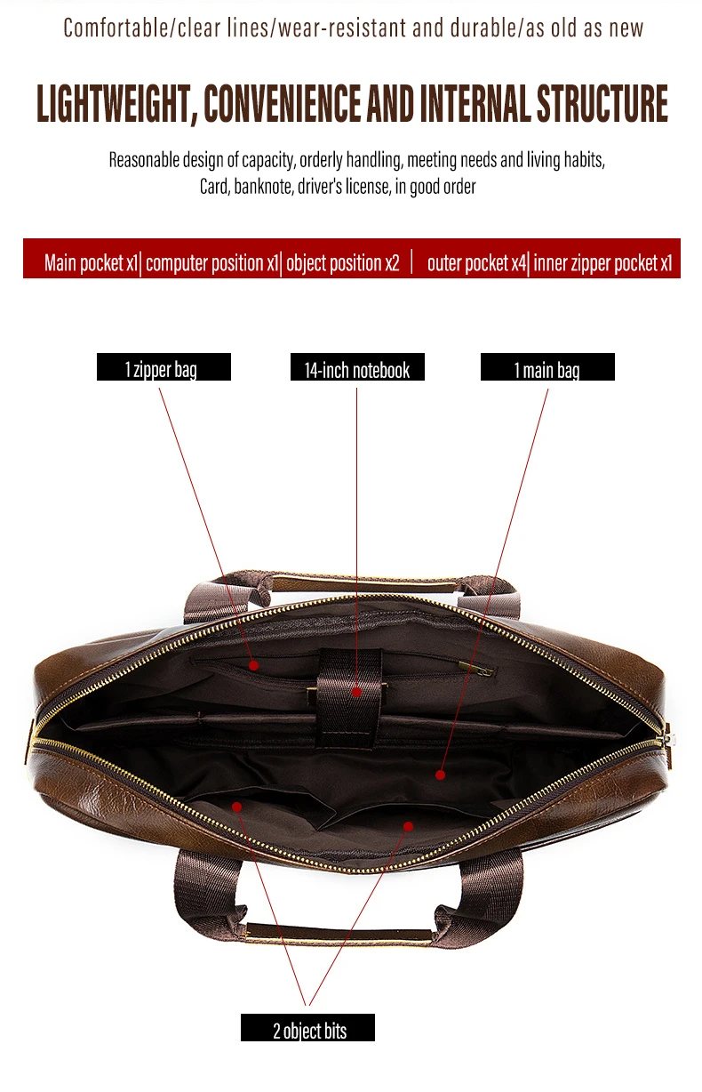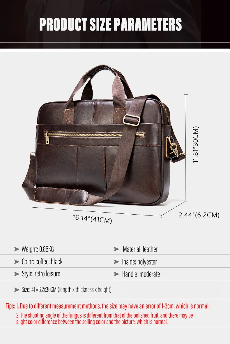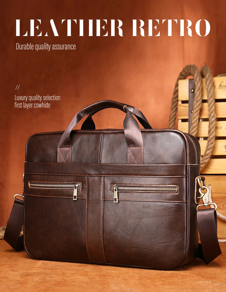 Laptop Bag Computer Handbag 15.6 16 inch Leather Business Travel Bag Cowhide Single Shoulder Bag Men's Briefcase For Lenovo Air