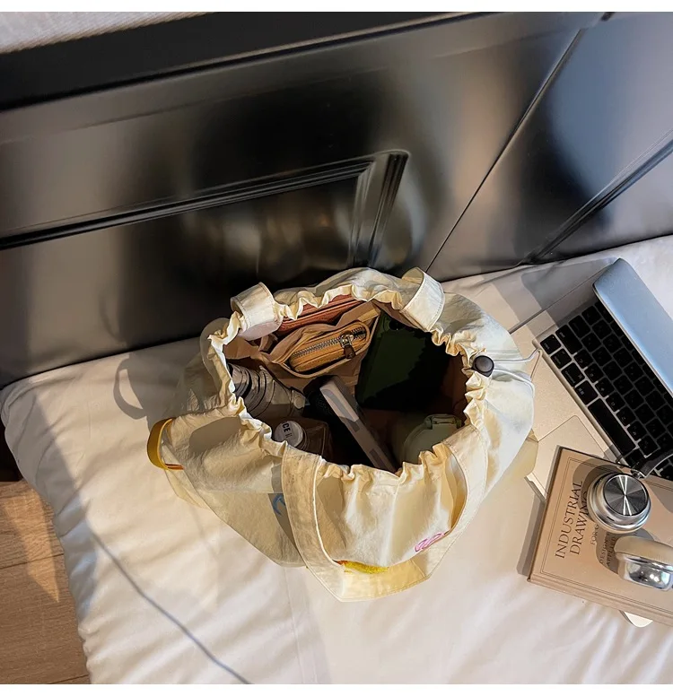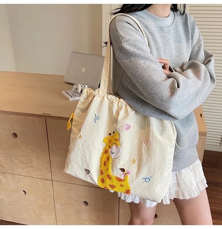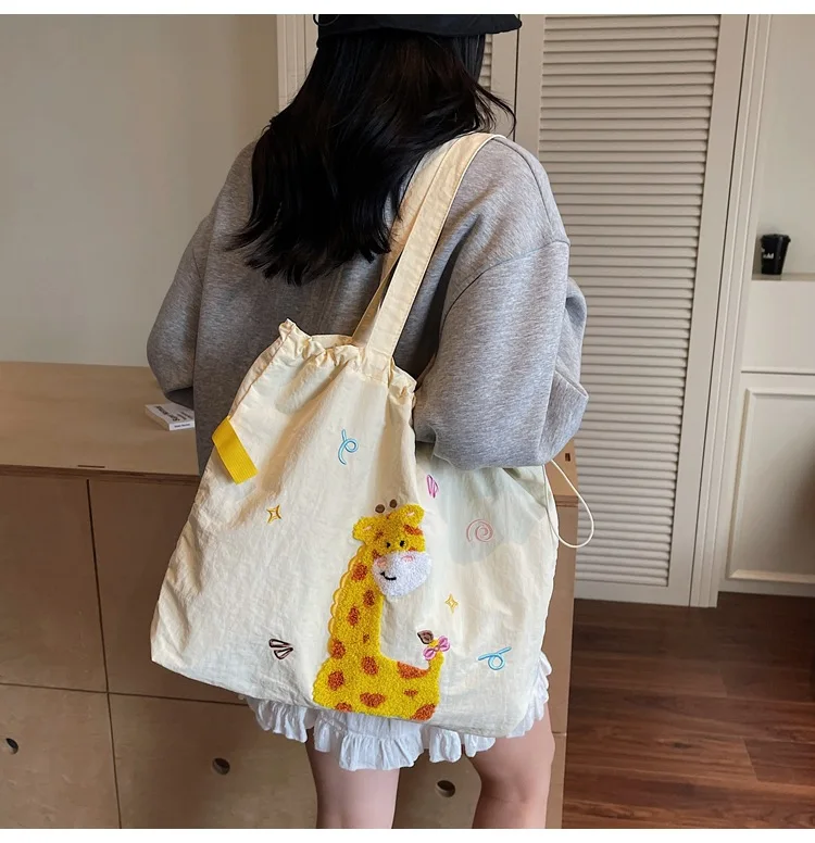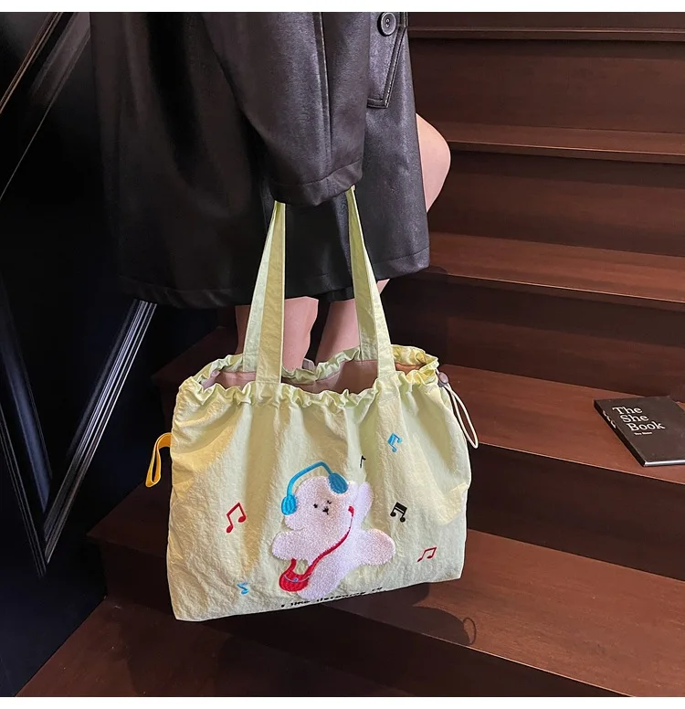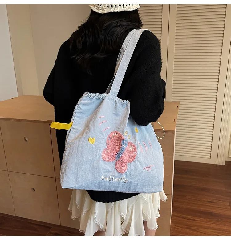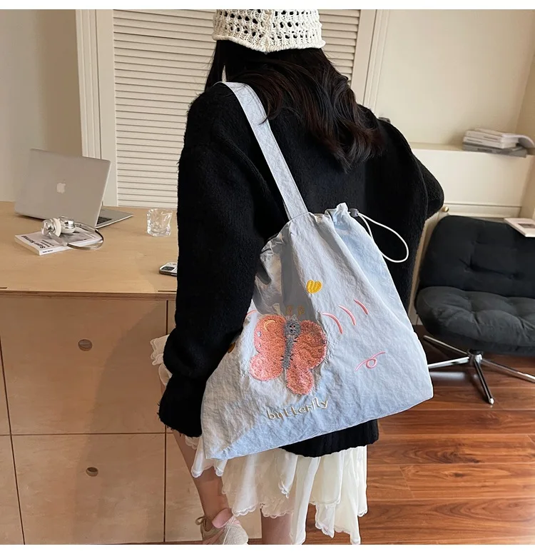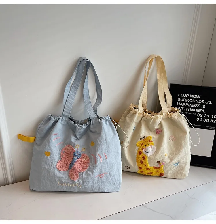 Leisure Large Capacity Single Shoulder Bag Trendy Embroidered Nylon Tote Bag School Style Sweet Handle Bag