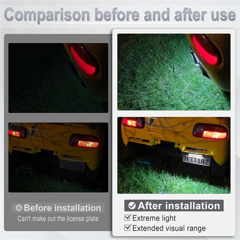 [Easy Installation]Without complicated tools or professional skills, it can be easily fixed to the back of the vehicle with just a few simple steps, quickly enhancing the brightness and visibility of the license plate and enjoying a safer and brighter driving experience.