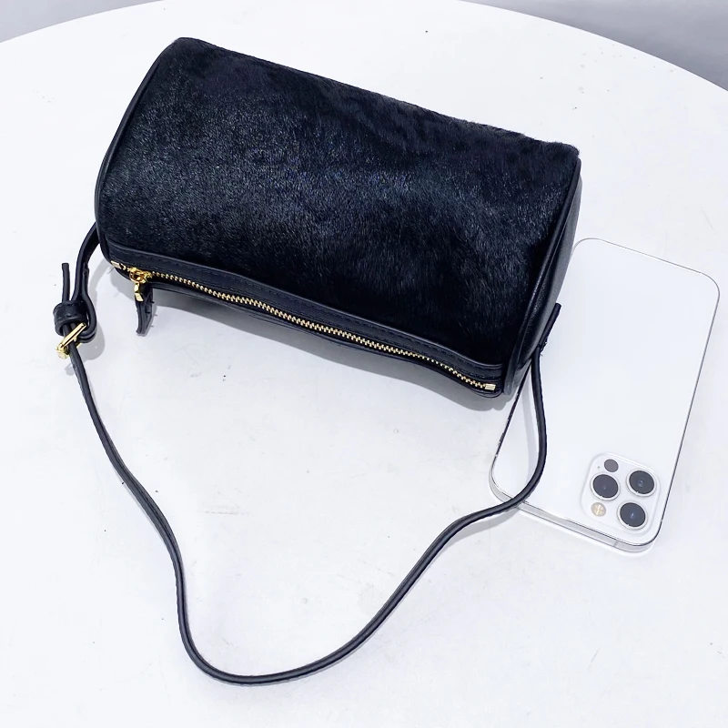 Luxury  Hair Splicing Genuine Leather Women's Bag 2025 New High Quali Single oulder Slant Cross Handheld Pencil Case...