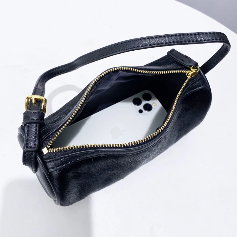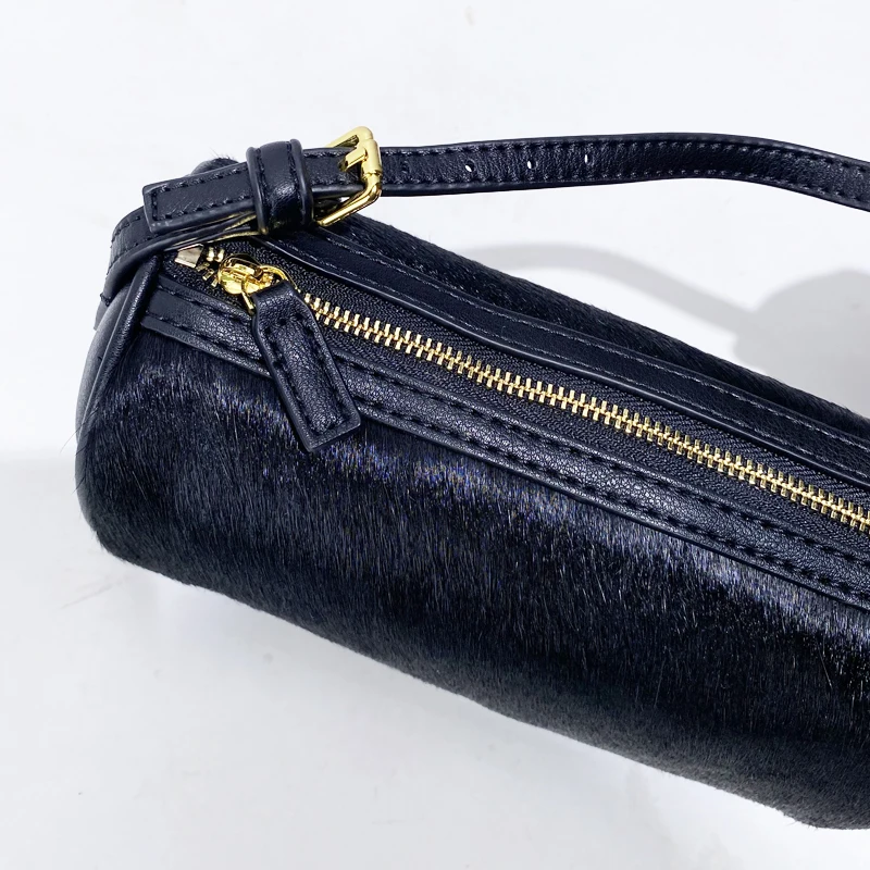 Crafted from premium leather and horsehair, the bag offers a luxurious feel and a high-end aesthetic.