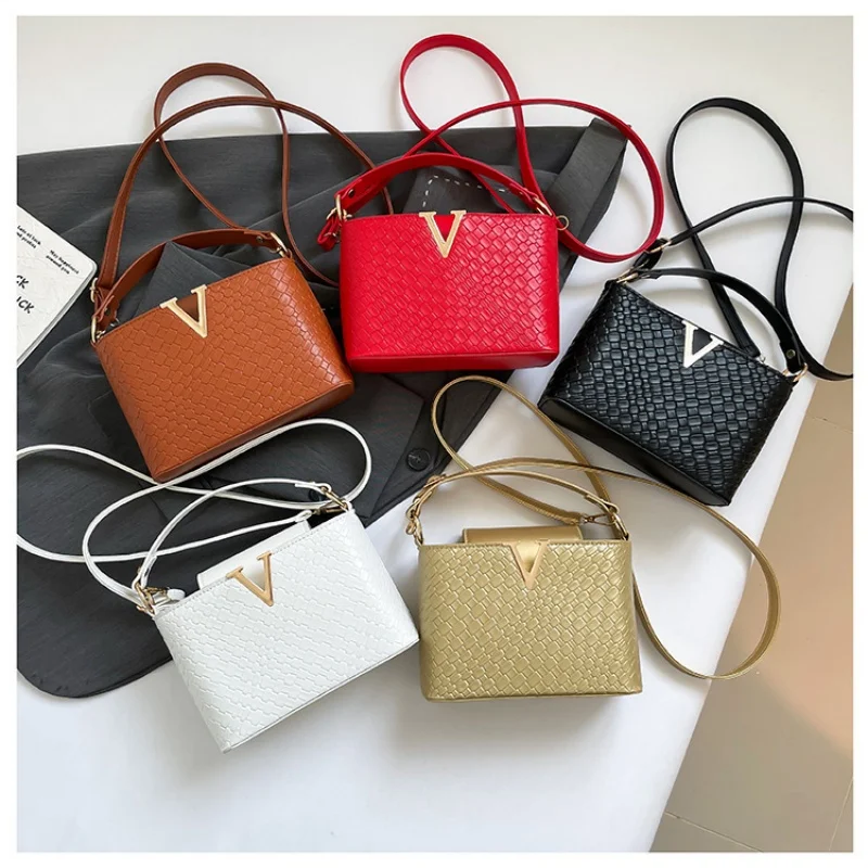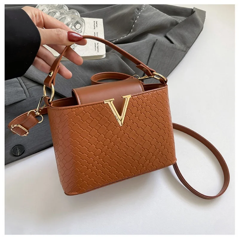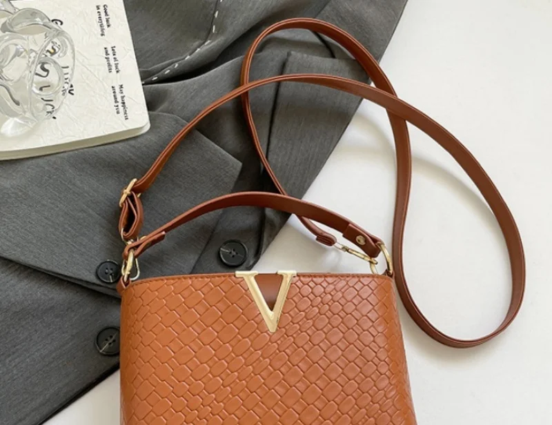 Luxury Women's Tote Bag, Chic V Shaped Stylish Pu Leather Bucket Bag, Top Cover Handbag Women Shoulder Crossbody Bags for Woman