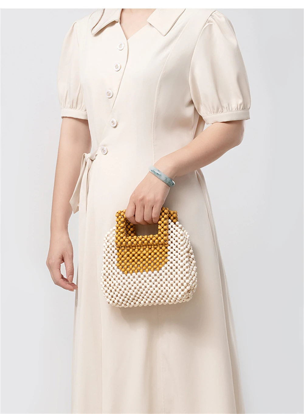 5. Unique and eye-catching: These handbags stand out from the crowd with their hand-woven natural wood beads. Wherever you go, they will give you a distinctive aesthetic that will catch your eye and spark conversation.