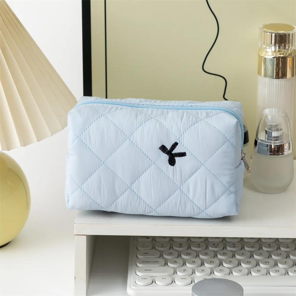 Cotton Makeup Bag for Women Quilted Travel Cosmetic Bag Girls' Make Up Organizer Portable Little Bow Makeup Pouch.