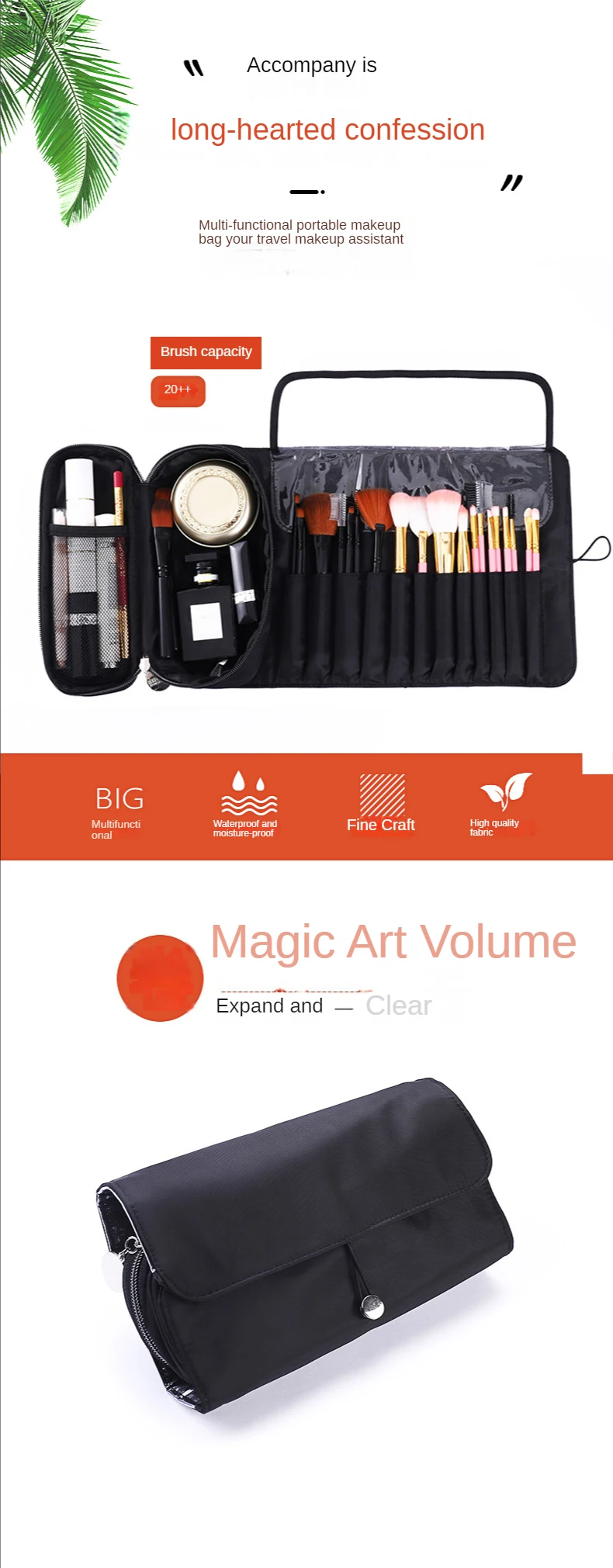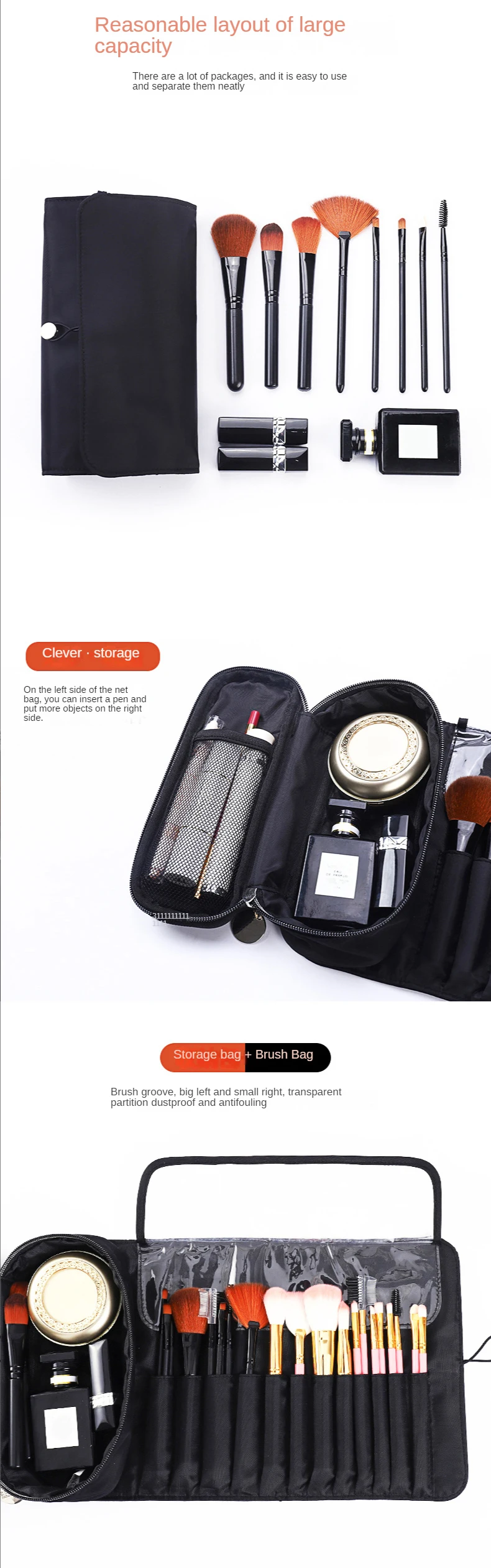 Makeup Bag Women's Cosmetic Brush Bag Travel Organizer Makeup Brushes Fold Tools Rolling Bags Waterproof Nylon Makeup Case