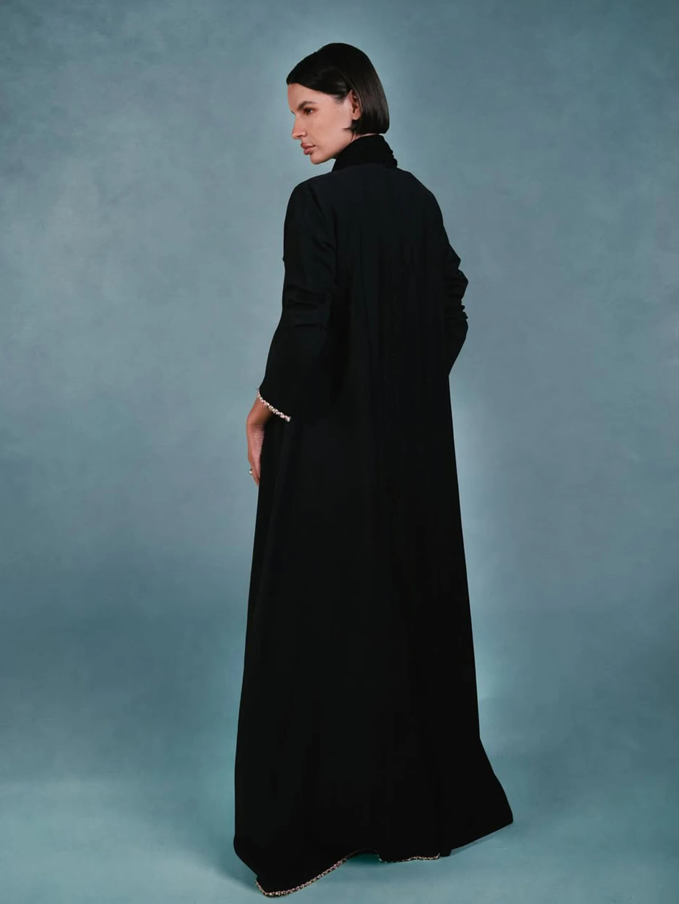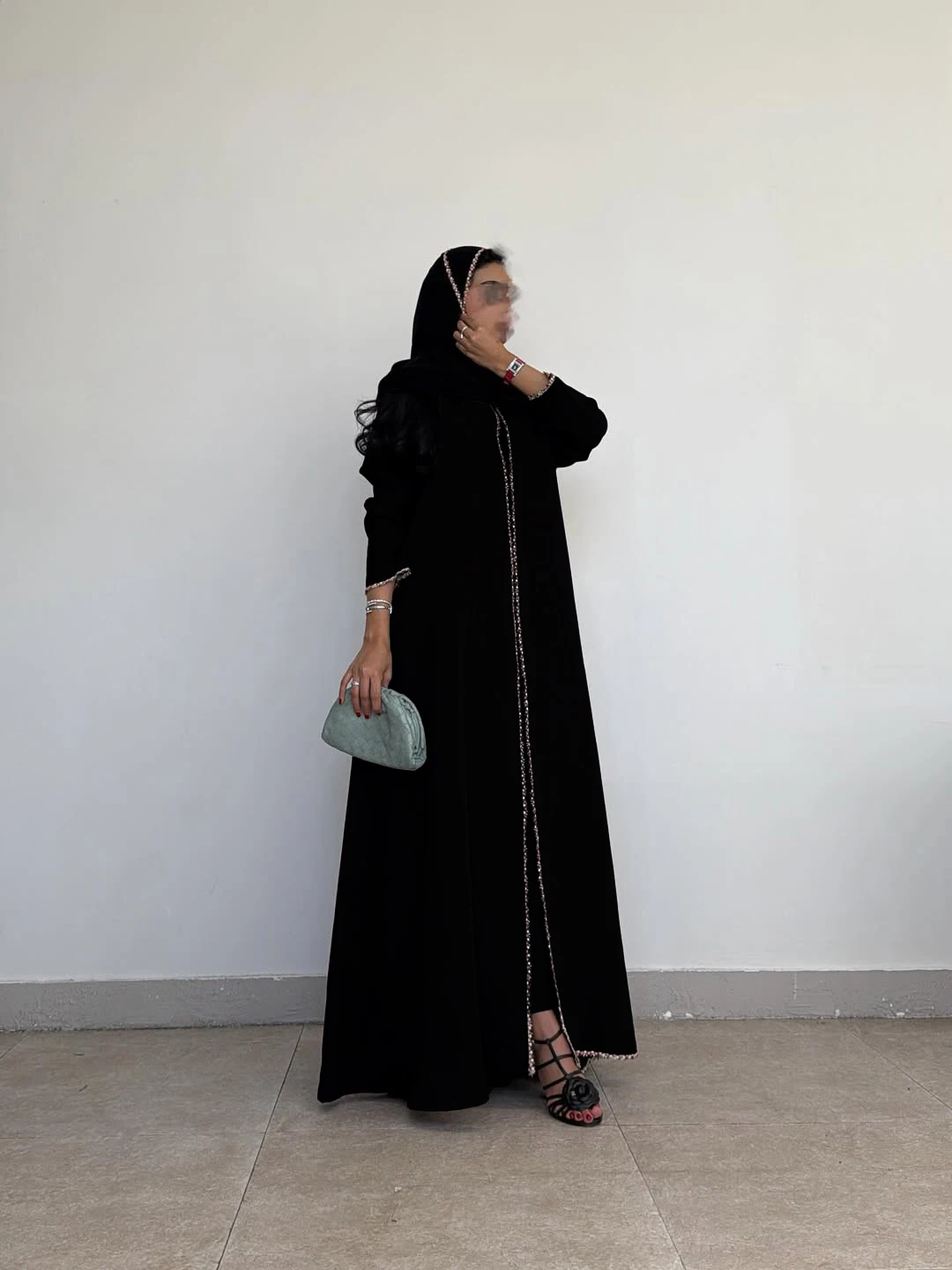 Middle Eastern Muslim Fashion Women's Black Long-Sleeved Embroidered Robe Abaya with Headscarf