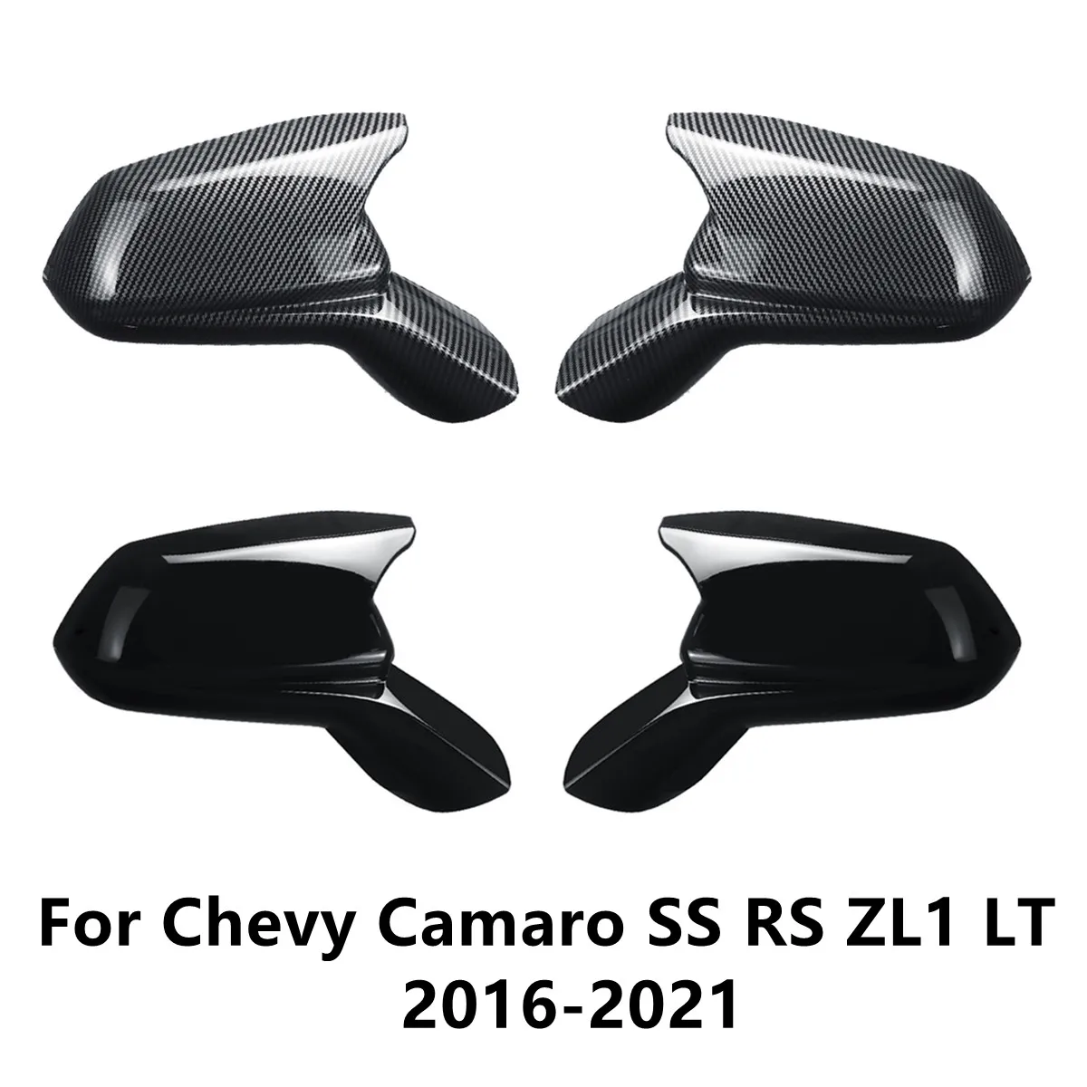 Glossy Black /Carbon Fiber Horn Style Rearview Side Mirror Cover Caps For Chevy Camaro SS RS ZL1 LT 2016-2021
