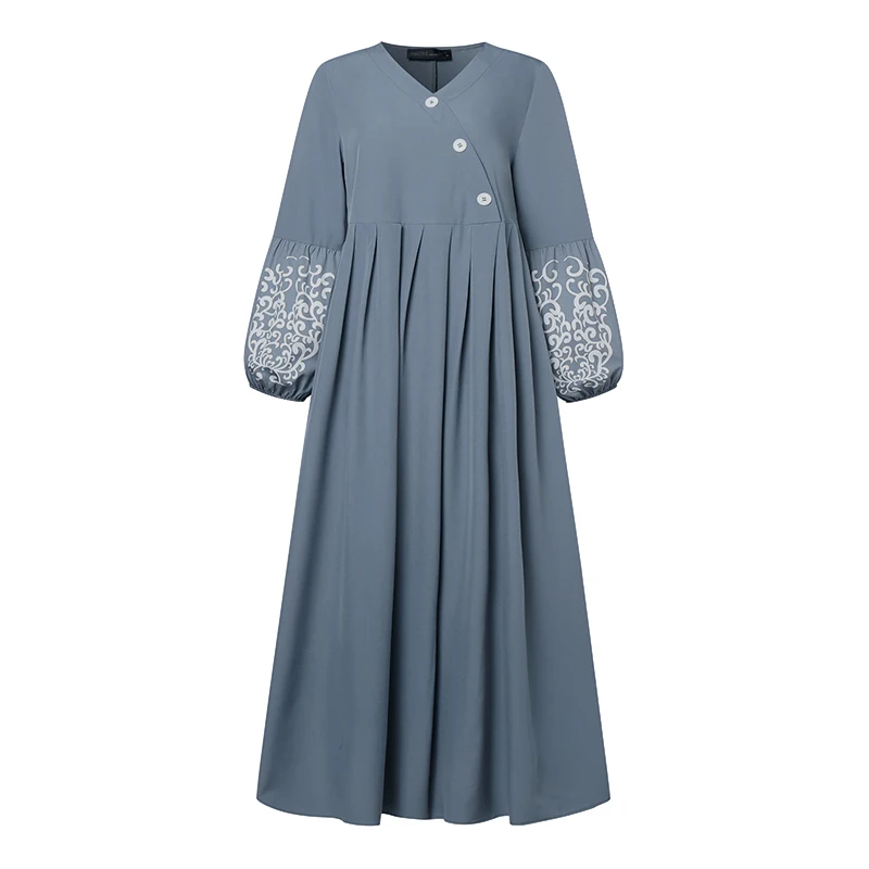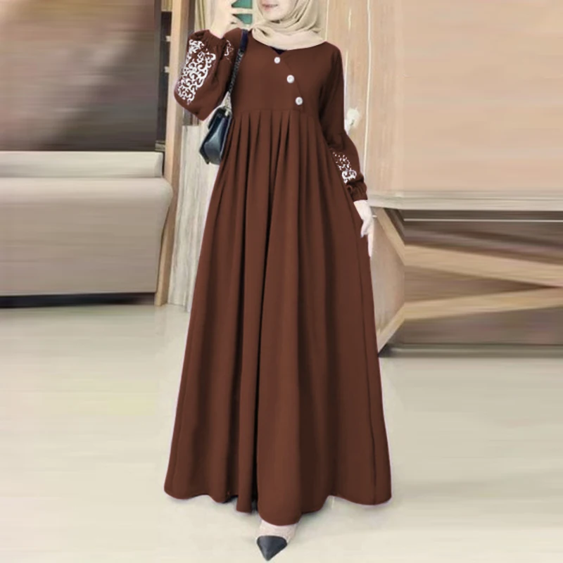 | Package included:1 Dress Material:100% Polyester Colors:Brown,Blue,Red Sleeve Length:Full Sleeve Neckline:V-Neck Pattern:Printing Length:Ankle Length Buckle chain:Button Down Front(Decorative) Thickness:Thin Style:Leisure,Bohemian,Retro,Europe,Muslim Dress Abaya Kaftan Season:Spring,Summer,Autumn,Winter Occasion:Family,Party,Beach,Wedding,Holiday,Employment Label: Yes Attentions: 1.The Real Object May Exist Slightly Colors Differences Compared To Images As Different Computers Display.Caution If Minding,Thanks. 2.There Might Be A Manual Measuring 1-3 cm Error.Sorry For Any Inconvenience. 3.Please Prevail On Real Item, Model Images For Reference Only. 4.Attention!!!Please check the size chart carefully before placing the order.