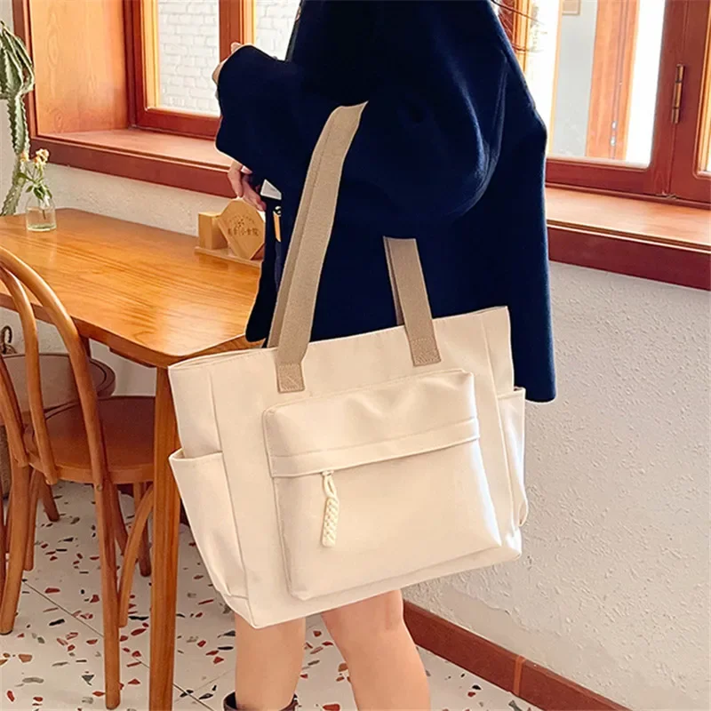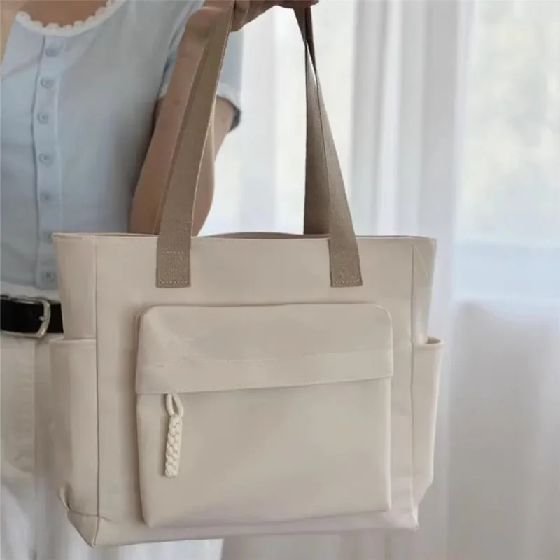 Nylon Tote Bag with Multiple Pocket Lightweight Foldable Design for Office Commute Shopping Fitness Storage Handbag Shoulder Bag