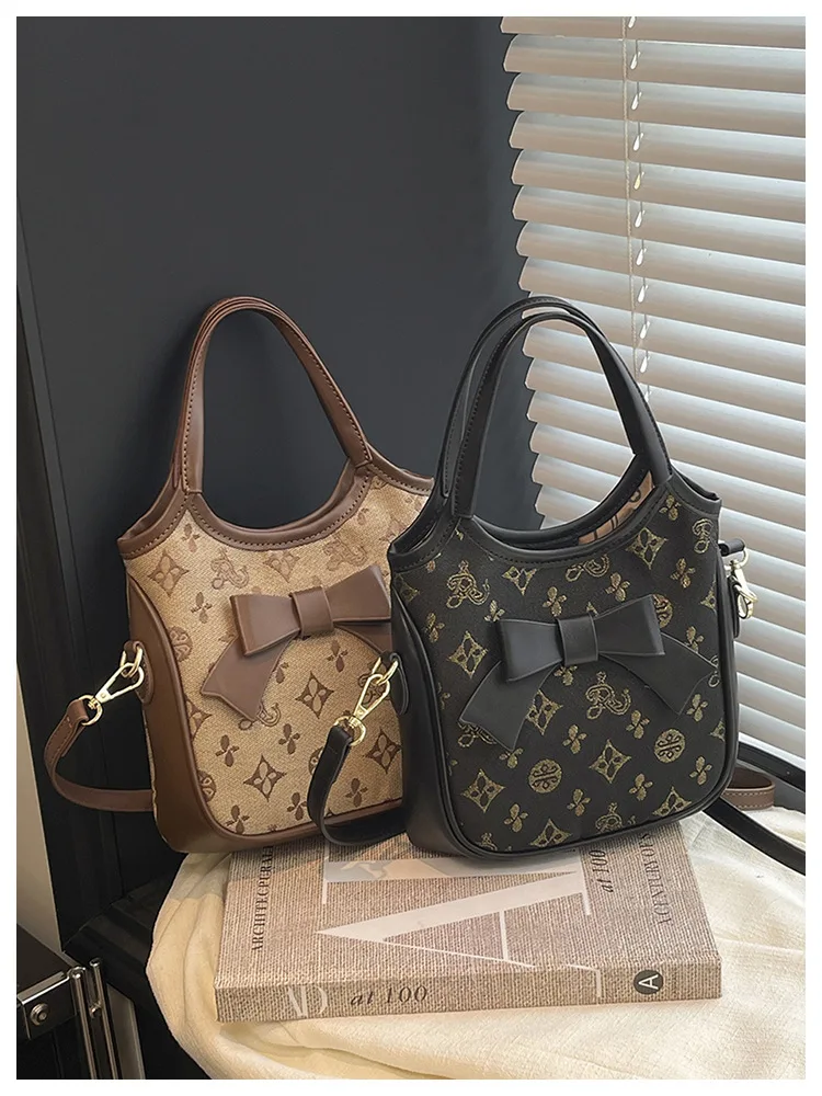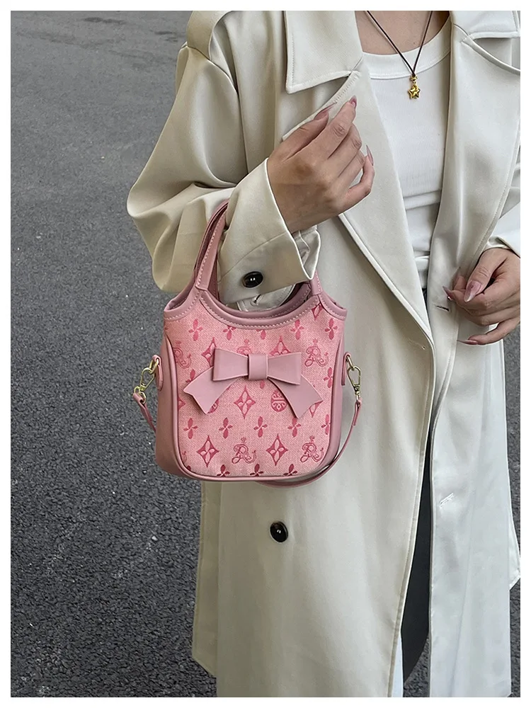 PU Hand-held Bow Bucket Bag Trendy Fashion Shoulder Bag Simple Versatile Women's Bag Commuter