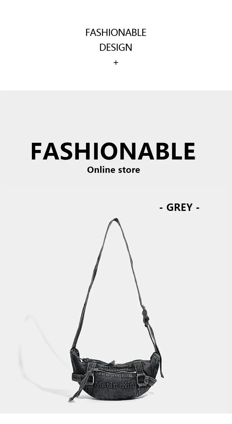 Shoulder Bag for Women New Washed Denim Bags Retro Crescent Bag Diagonal Span Underarm Tote Handbag Mini Portable