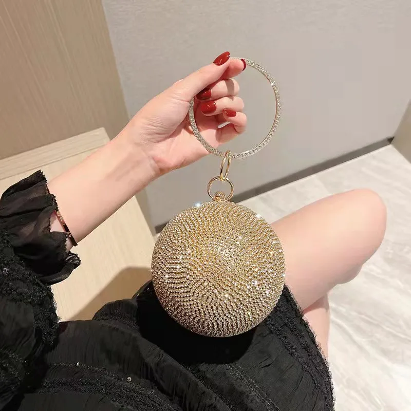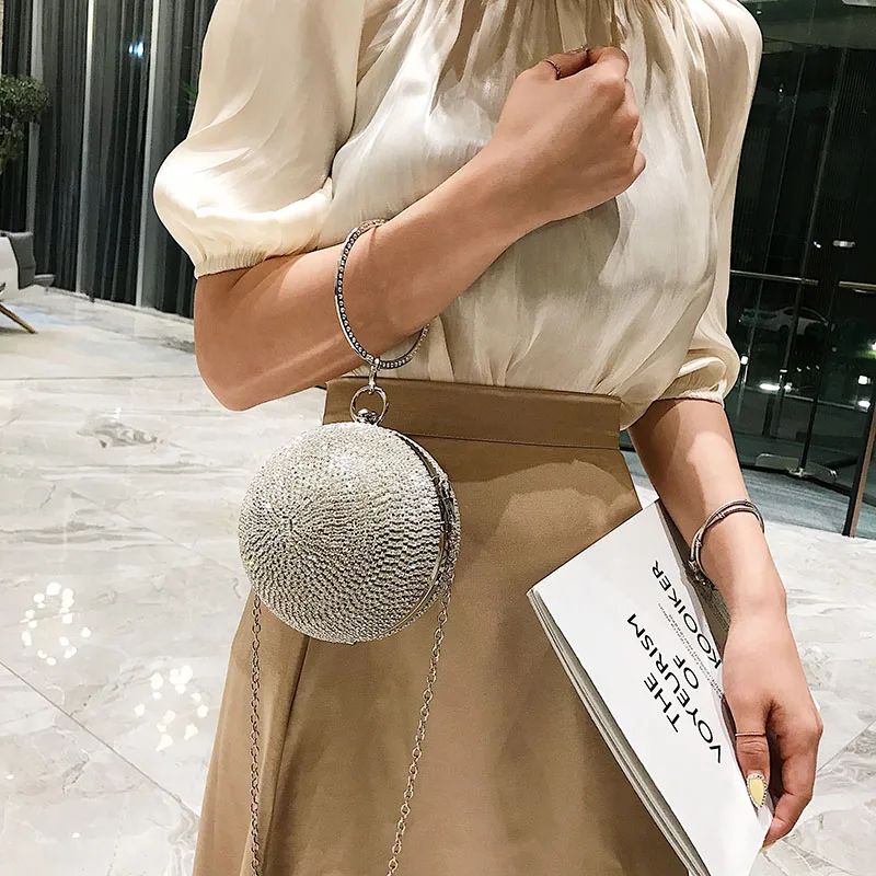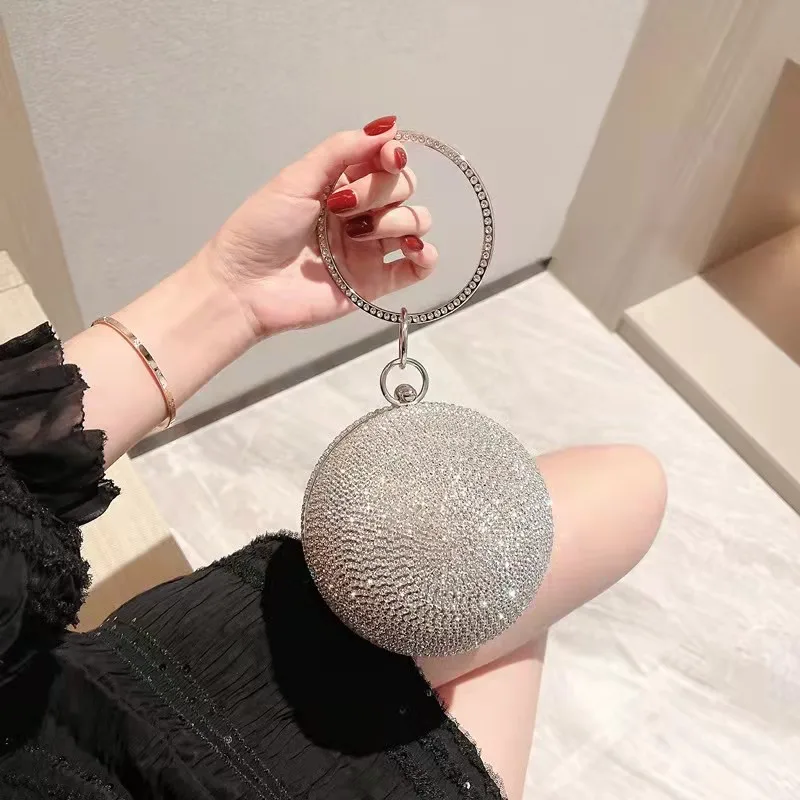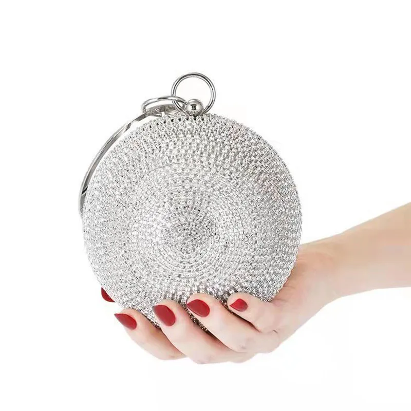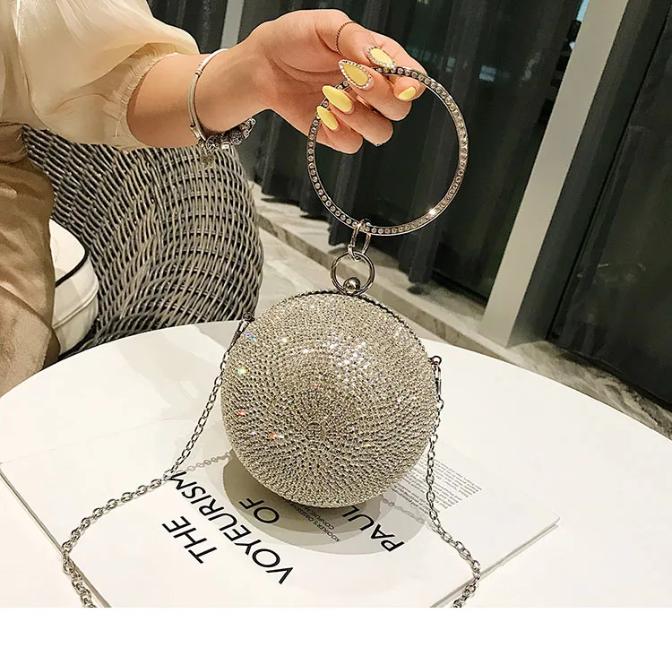Silver Mini Round Ball Evening Bags For Women 2022 Fashion diamonds Clutch Bag Ladies Messenger Bag Chain Handbag FTB166