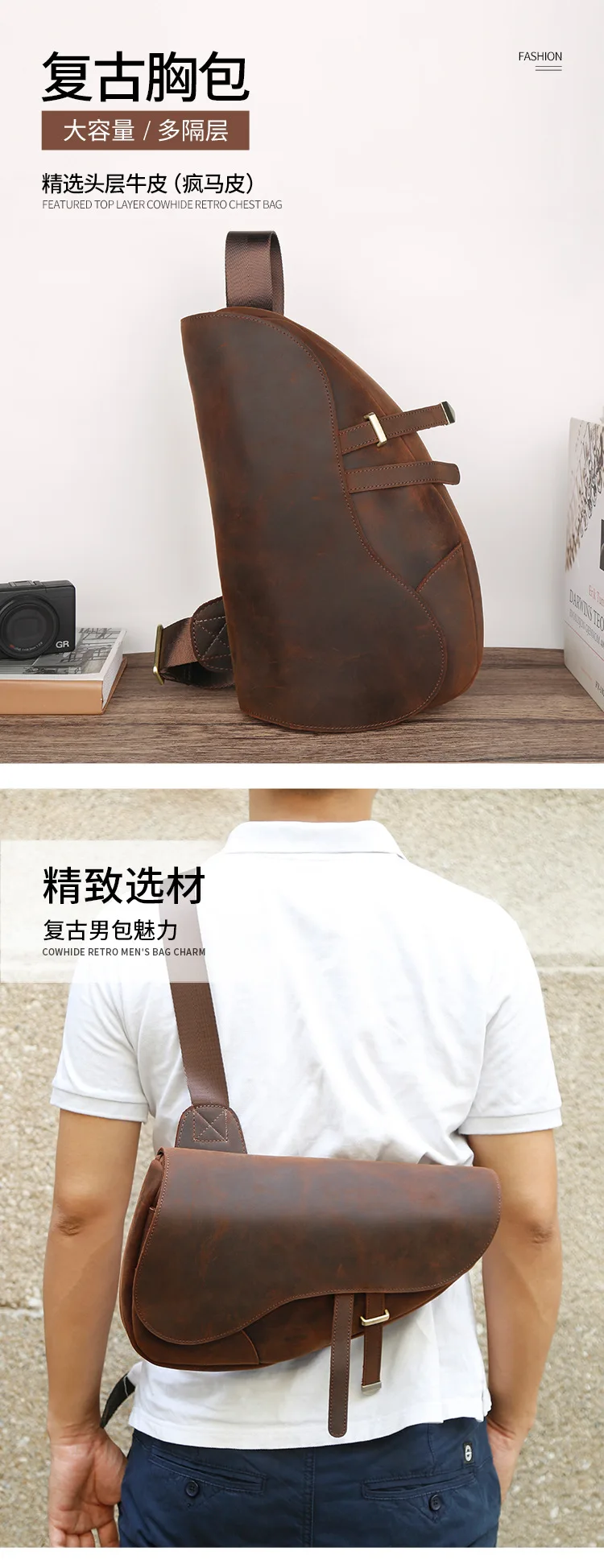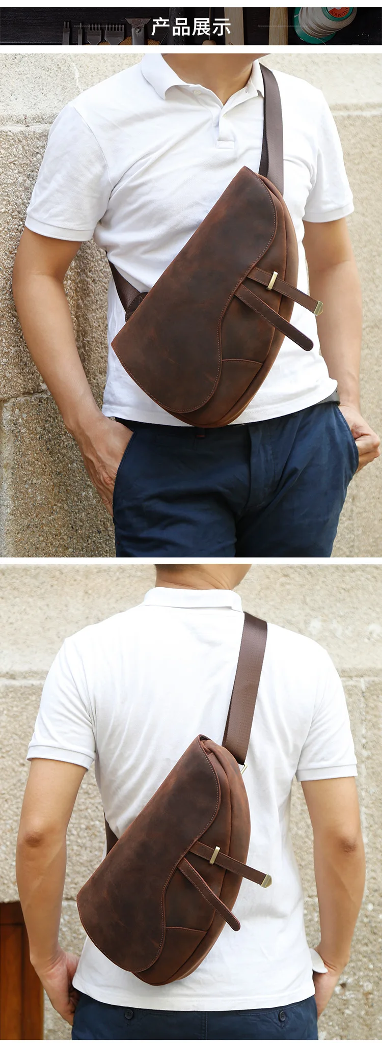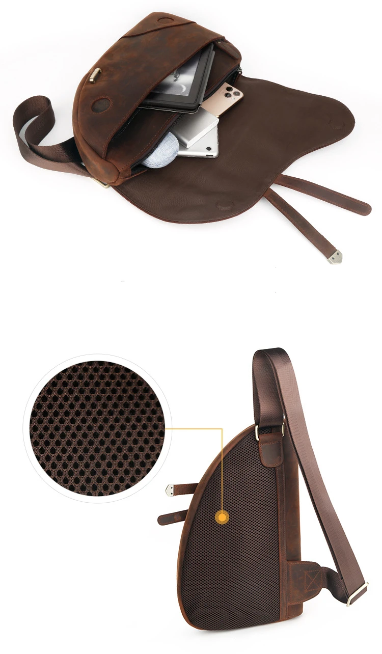 Sling Bag Men's Genuine Leather Shoulder Bags for Men Casual Travel Messenger Bag Men Crossbody Bags Leather Chest Pack