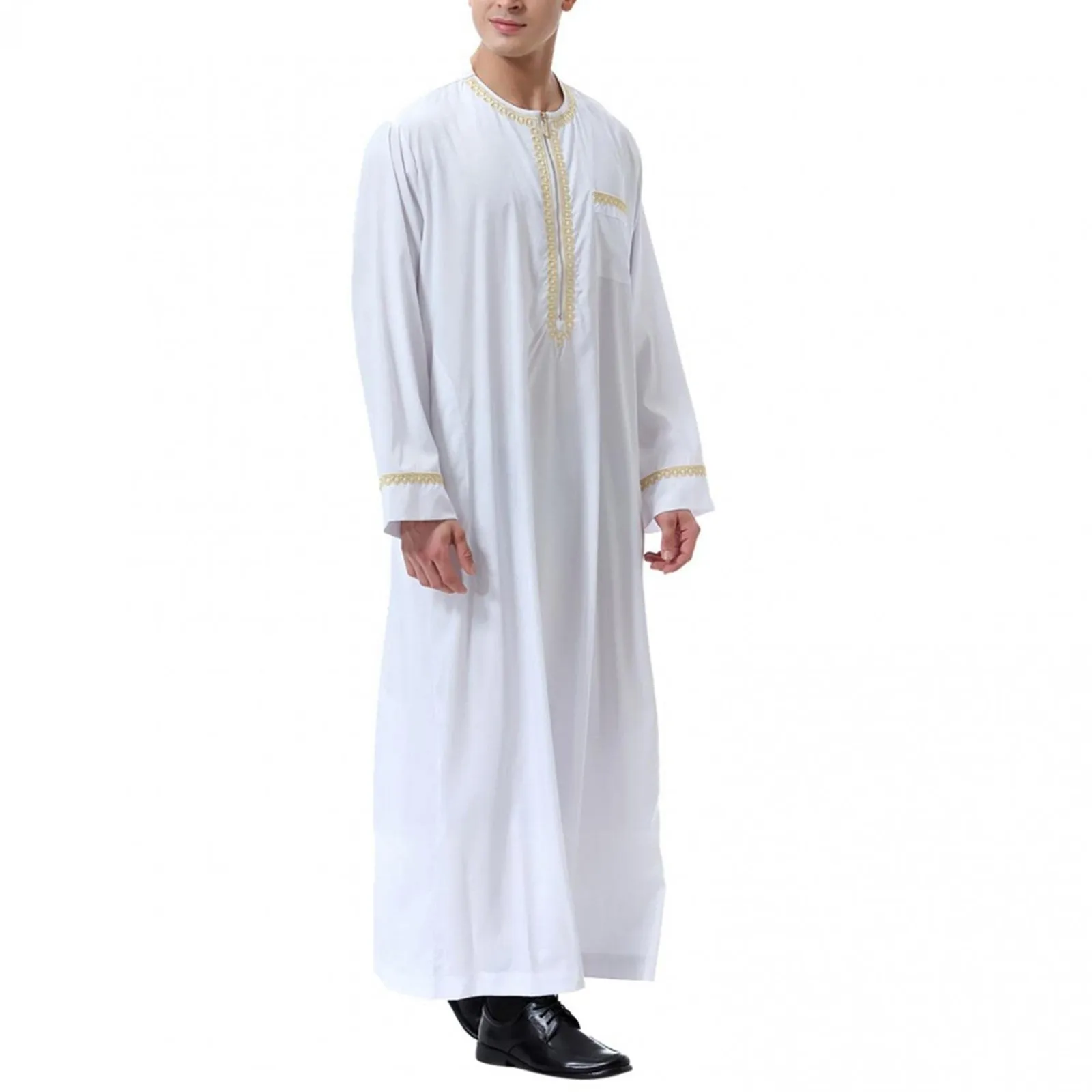 Traditional Muslim Clothing Men's Muslim Shirt robe embroidery Islamic Royalty Dubai Robe O-Neck Long Sleeve Retro Loose Abaya