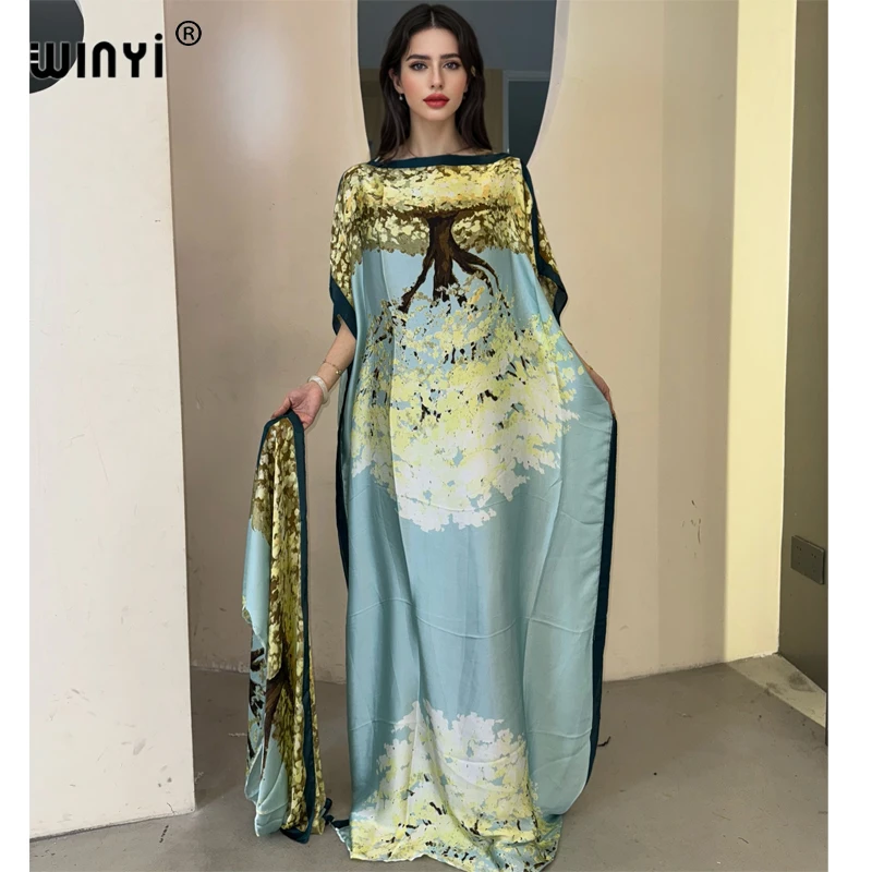 WINYI muslim african traditional dress for woman abaya dubai luxury Kaftan evening dress Elegant Maxi Length Dress beach covers
